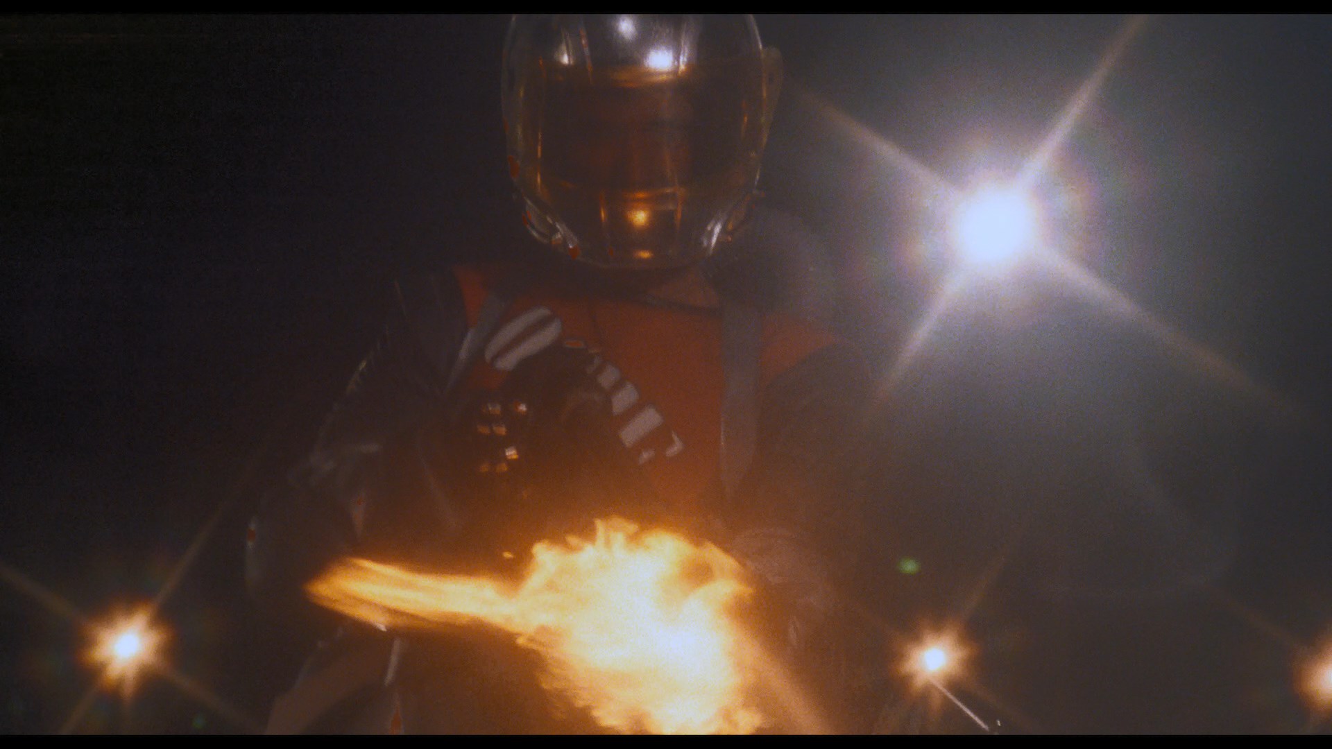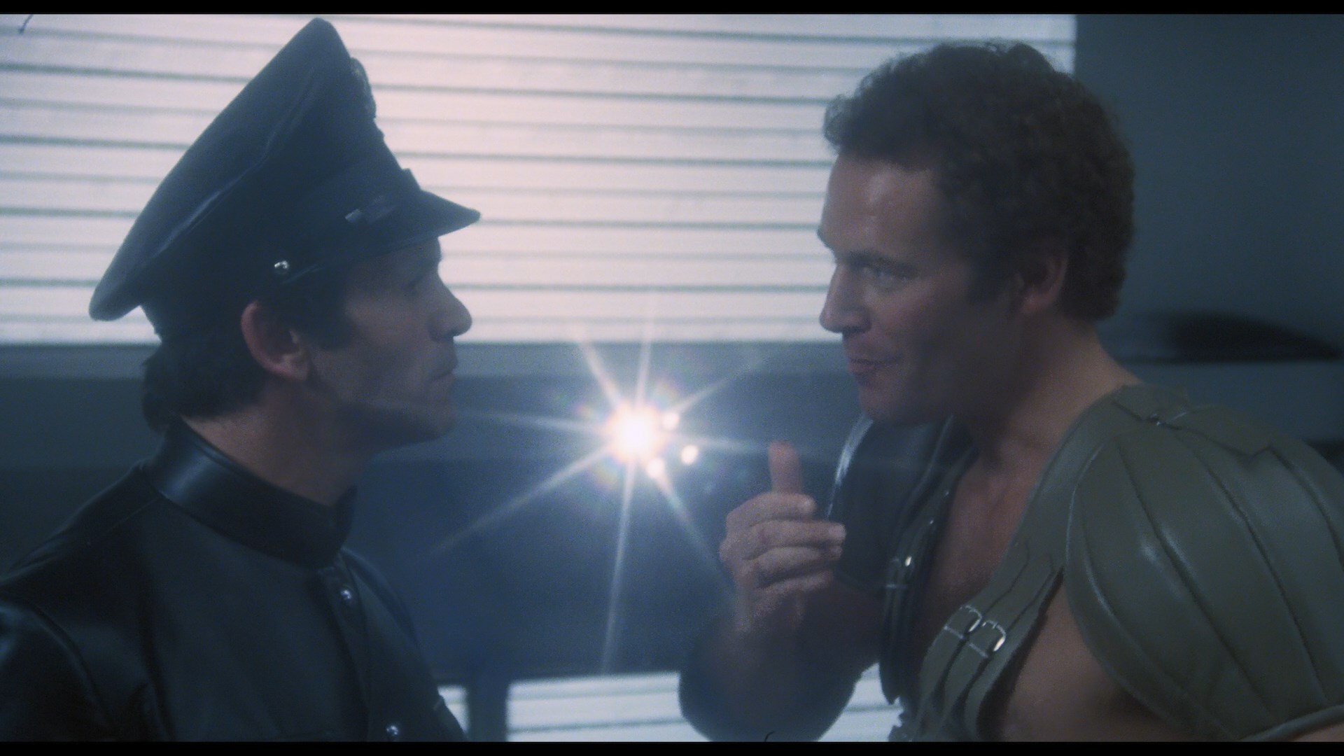 upgrade courtesy of a 4K scan of an interpositive. Needless to say, this release (under the title Warriors of the Year 2072) is a going to be a revelation for just about anyone since there was no way to see this in good quality before apart from a very scarce theatrical print from Europe. The dark scenes finally have depth and clarity, the golds really pop, and it all looks much more like the Fulci style we know and love. The film was shot in English (with looping for some of the secondary actors(, so that's the version you get here with a good DTS-HD MA English 2.0 track (with optional English SDH subtitles). This also represents the longer 94-minute European cut of the film, which has only been easily accessible before via the Italian-only DVD release and contains some extra plot and character bits involving Drake; you can read a full breakdown of the differences here. A commentary is also included with this writer and Troy Howarth, so that can't be evaluated here but hopefully it will prove to be enjoyable. (The film is also preceded with a warning about strobing lights, and they ain't kidding; Williamson's big intro can give you a migraine.)