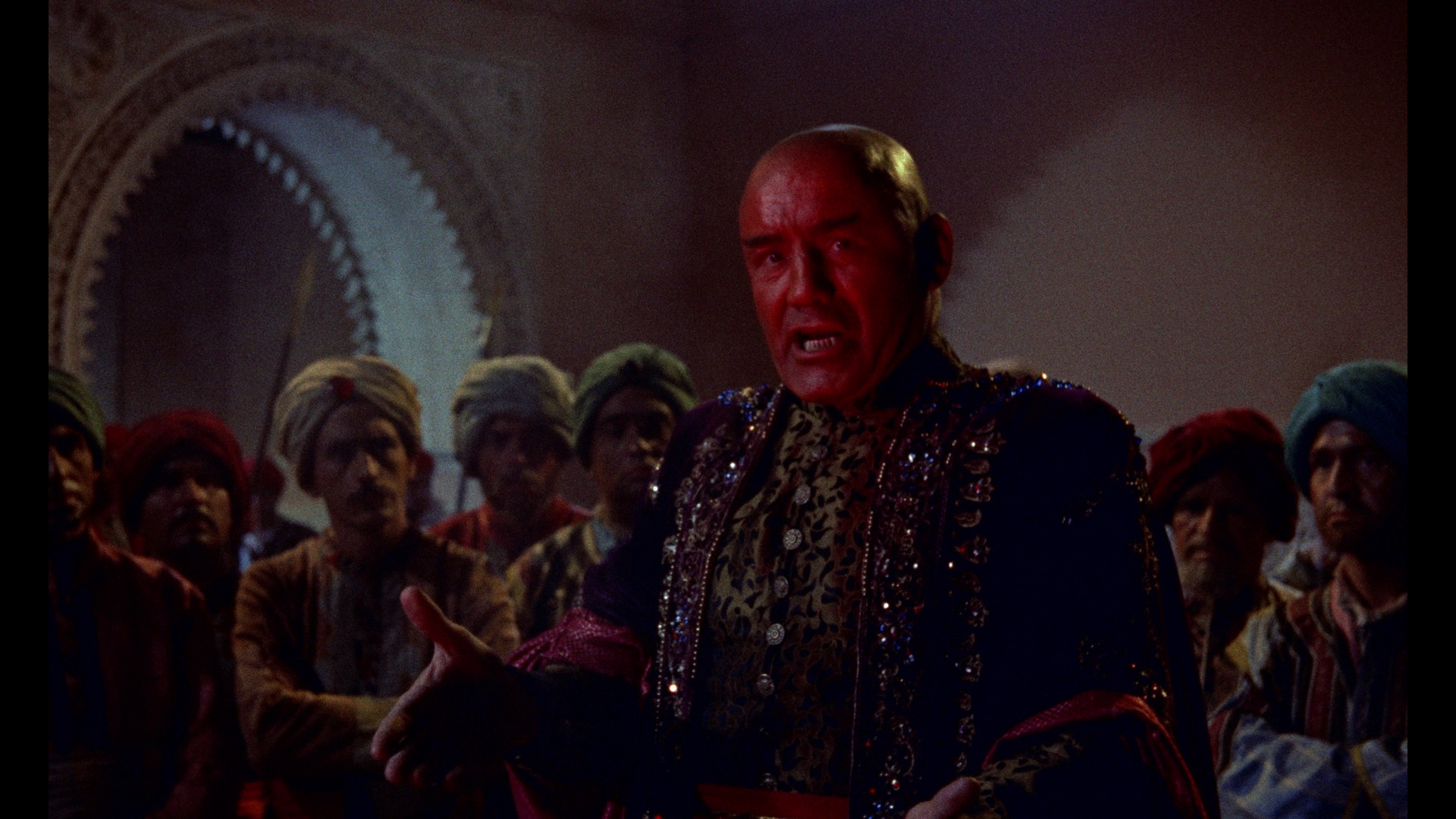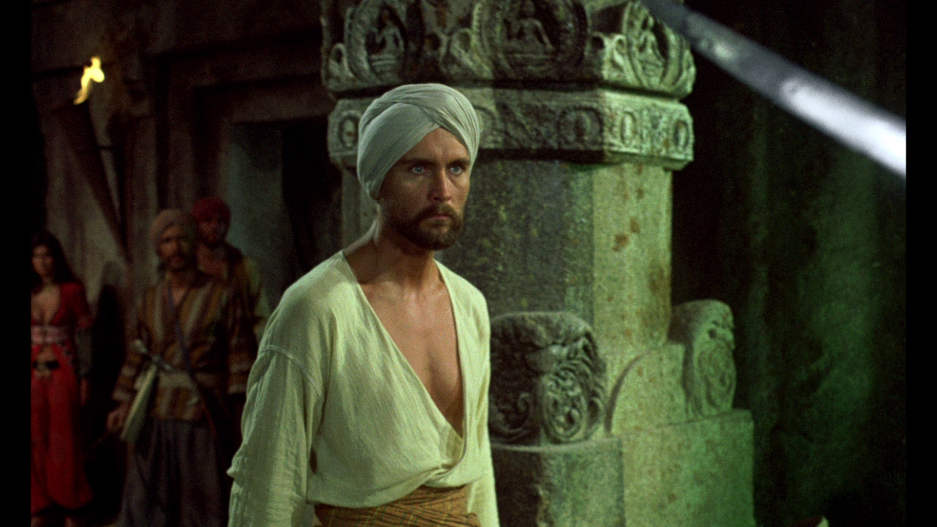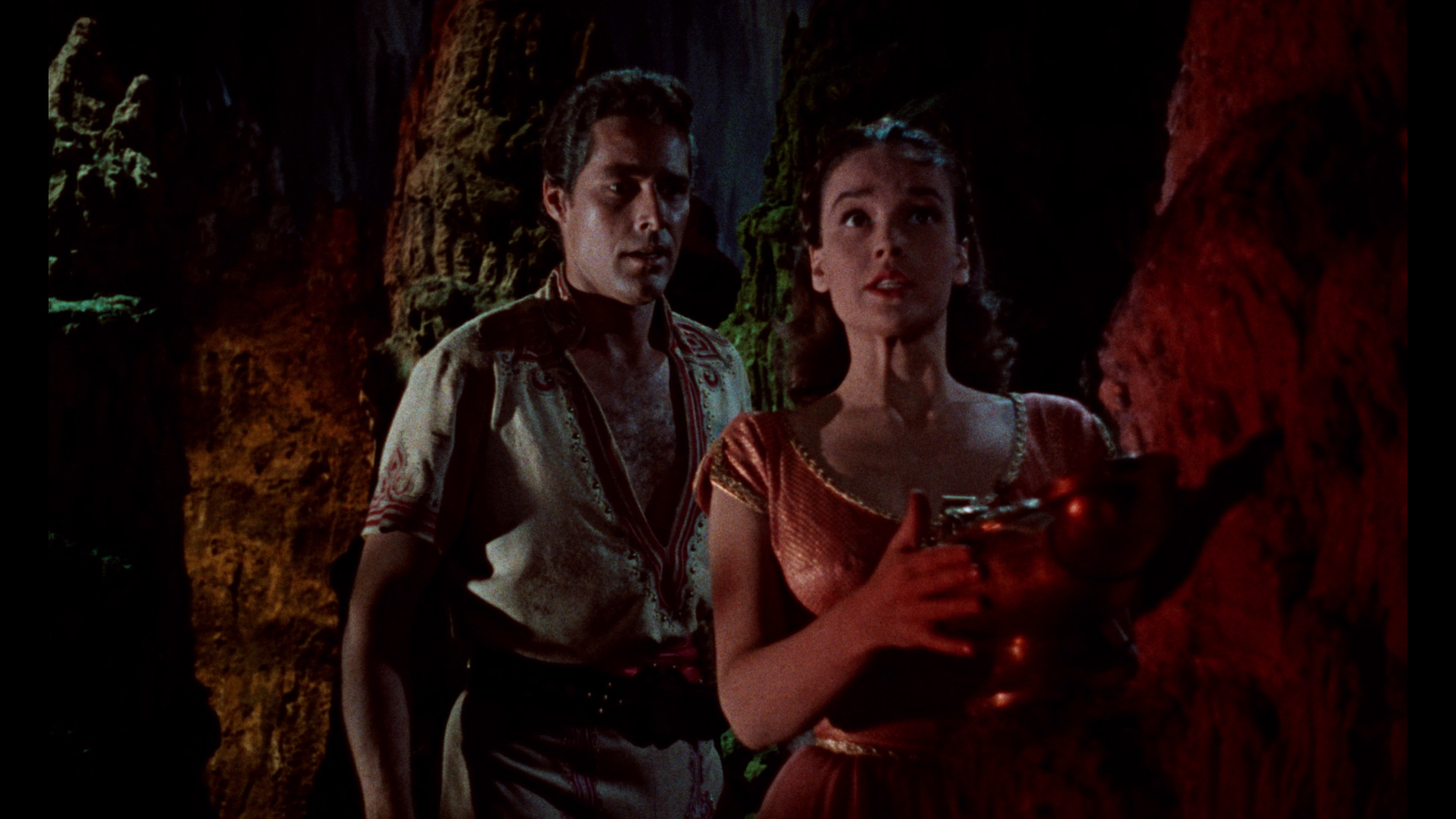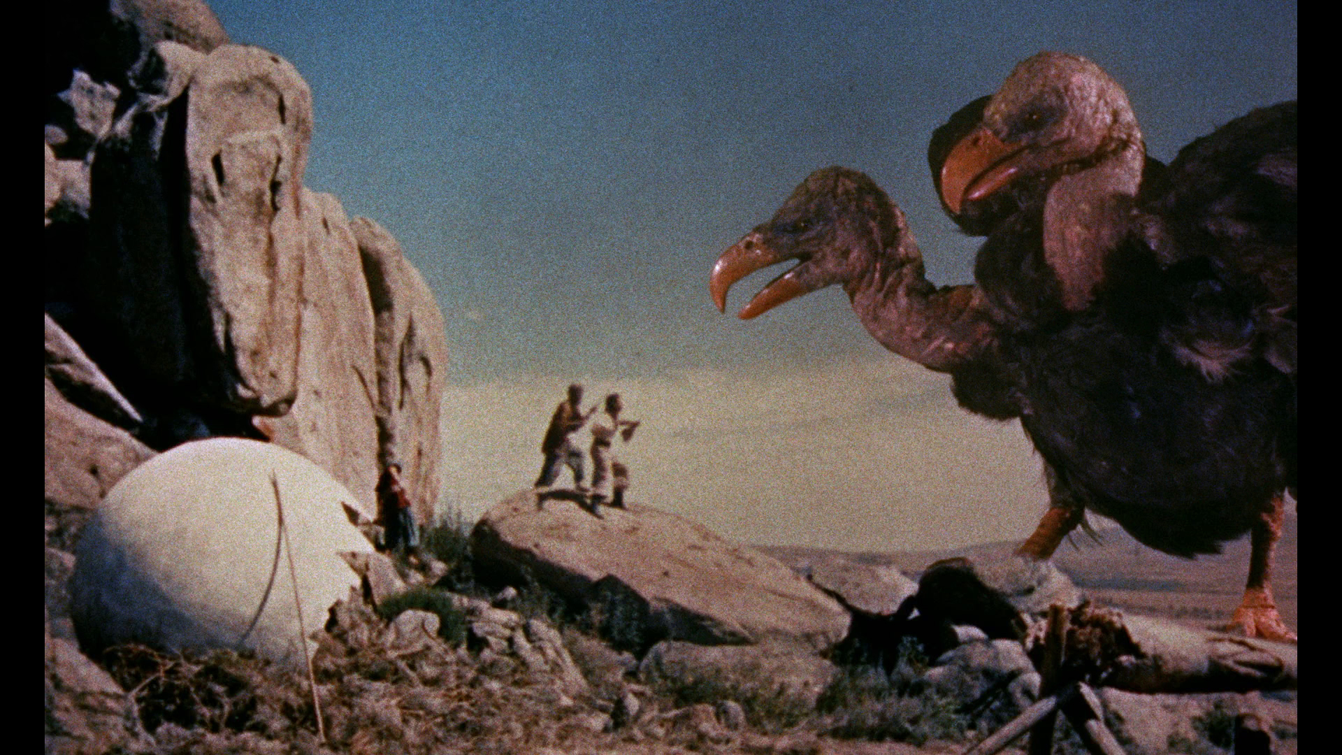 the"This Is Dynamation" featurette, and the theatrical trailer. Again the Indicator expands considerably in the extras department and features a sterling 2K-sourced transfer from Sony, which presents the film in the most immaculate quality possible as long as you take into account that there's more dirt and grit baked into the rear projection stop-motion footage than either of the previous two films. (Note: the first pressing featured a darker, more muted transfer compared to the Twilight Time, reportedly due to a different master delivered, but the more vibrant version is currently available as a repressed disc. Grabs in this review are from the second pressing. Anyone wishing to replace their current Blu-ray disc of SINBAD AND THE EYE OF THE TIGER should contact Powerhouse Films at info@powerhousefilms.co.uk providing proof of purchase and confirming the unique number of their limited set (as given on the rear of the bellband, 'xxxx/6,000').