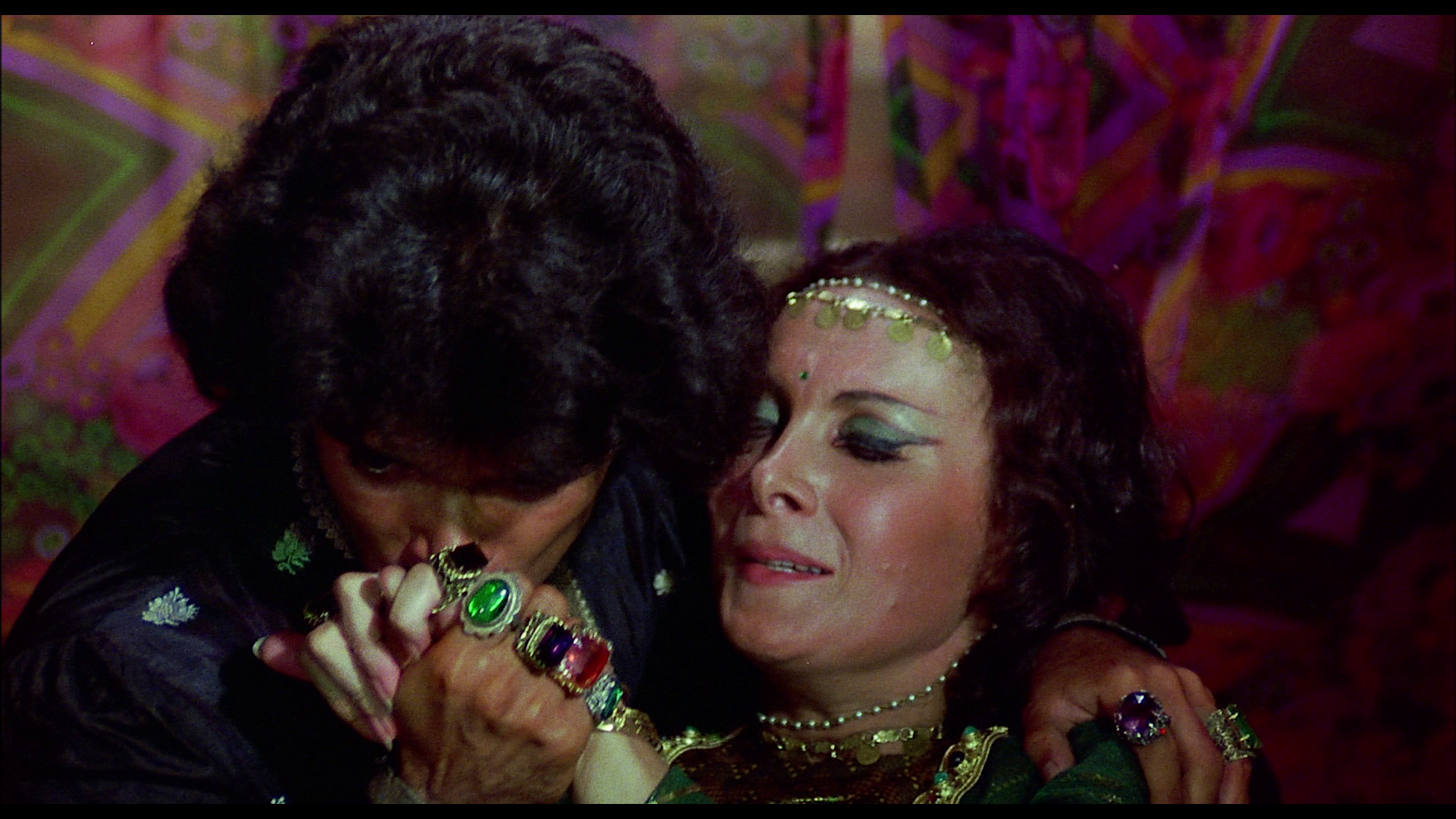 Fifteen years after the release of 7th Voyage, an entire generation of effects artists had been inspired to take Harryhausen's ideas to a new level in both studio and indie films. Harryhausen decided to revisit his most popular hero with a brand-new production, The Golden Voyage of Sinbad, which began the tradition of using a different director, star, and composer for each film in what would become a trilogy. (It also started the unofficial trend of baring as much female skin as possible within the then-lenient confines of a G rating.) John Phillip Law (Barbarella, Danger: Diabolik) grew out a beard and sported an earring as the adventurous sailor, who retrieves a golden ornament from a flying homunculus during an ocean expedition. The discovery's supernatural connections are immediately obvious when Sinbad decides to wear the sparkly gold treasure as a necklace into town and discovers it's tied to a nefarious sorcerer, Prince Koura (Baker, fresh off of Nicholas and Alexandra and The Canterbury Tales and a future Doctor Who based on his role here), who wants it back for his sinister plans. Sinbad and his men end up visiting the island of Isor to see a gold-masked oracle capable of unlocking the mystery, only to be taken prisoner instead and forced into battle with a giant centaur. Also involved is a Vizier (Wilmer) who possesses the other half of the ornament, which is actually a mystical map, and a slave girl named Margiana (legendary scream queen Munro) with an eye tattoo on her palm