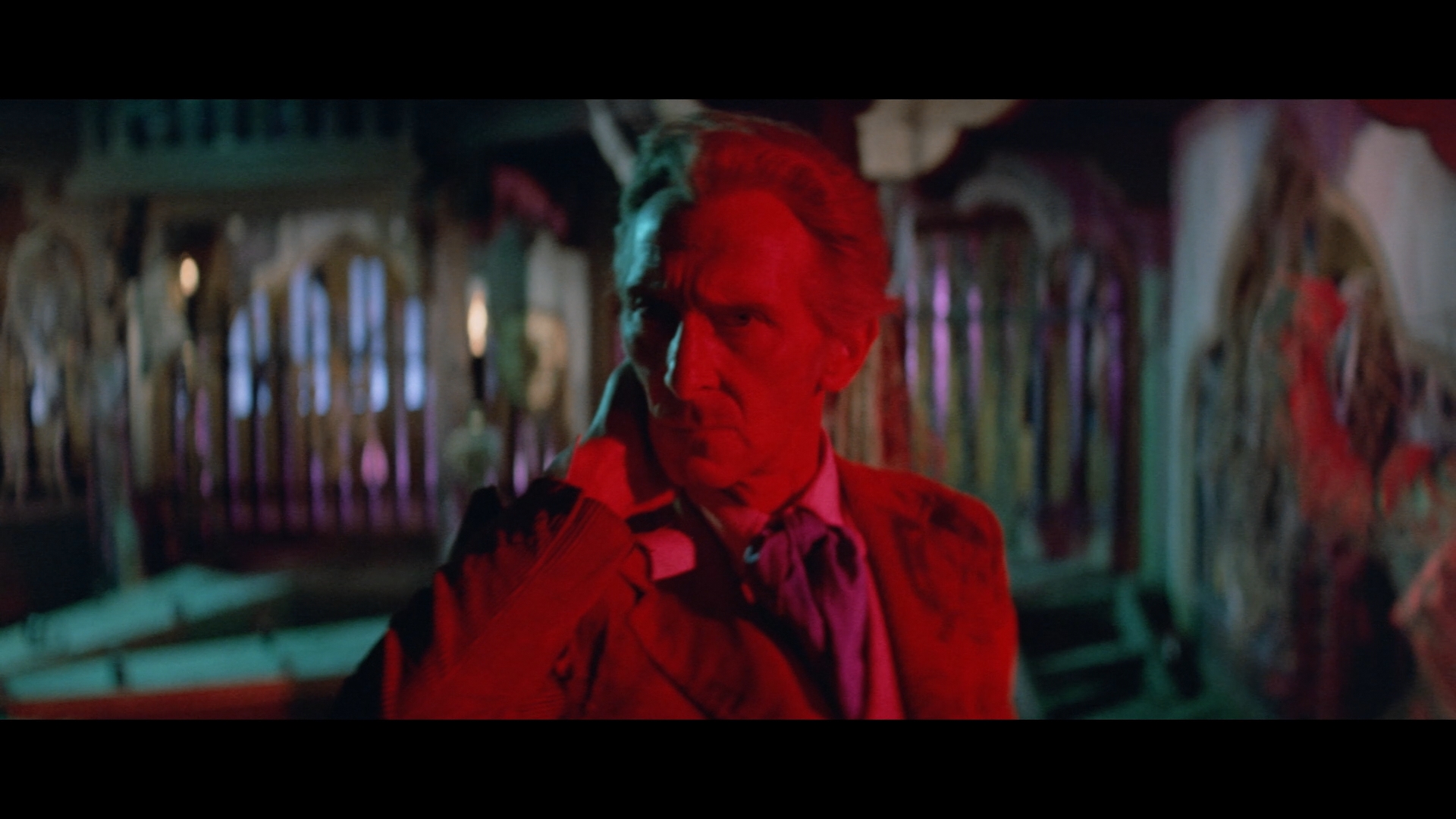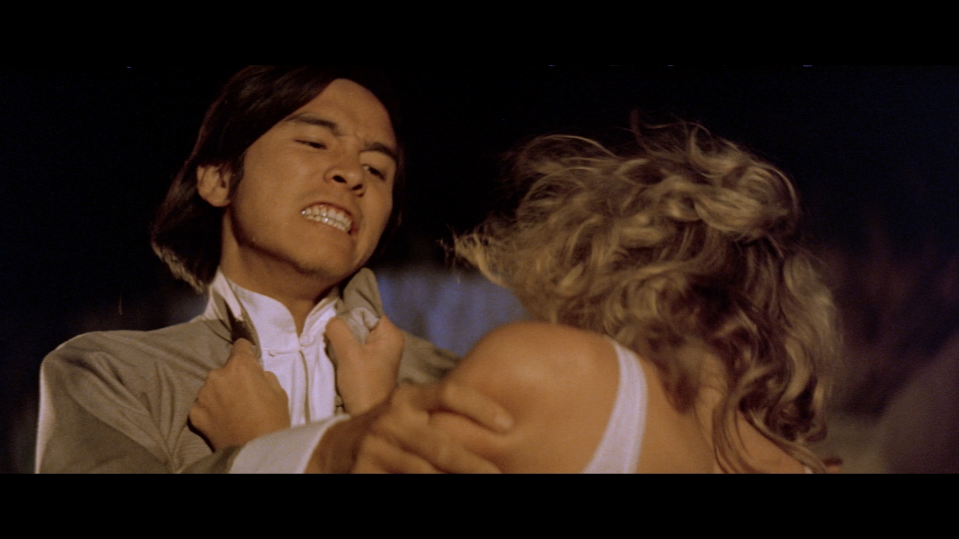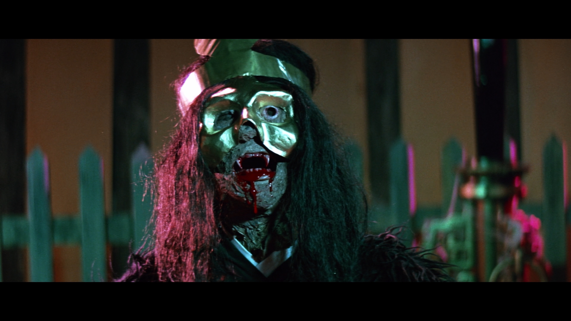 The massacred U.S. edition of this film became a public domain mainstay on VHS throughout the '80s, with the first remotely acceptable edition finally coming from Anchor Bay on DVD and VHS in the late '90s. That edition was letterboxed but non-anamorphic and featured both cuts of the film, albeit with very weak picture quality including very boosted contrast and wonky colors. A better option came a couple of years later on U.K. DVD from Warner Bros., featuring a different anamorphic transfer and far better color modulation that made it the best option around for a very long time. Thankfully the inevitable Blu-ray release finally came along from Scream Factory in 2019, featuring both the uncut U.K. version and the messy U.S. one (the latter sporting some SD inserts for its exclusive footage including the heavily reworked opening titles). Anyone familiar with the history of the film should be delighted here as the vibrant colors look dead on and the detail is as strong as The Legend of the 7 Golden Vampiresthe lensing will allow, given that huge stretches of it take place in heavy darkness. The DTS-HD MA The Legend of the 7 Golden VampiresEnglish mono audio (with optional English subtitles) is acceptable and again limited by the nature of the elements; it's not the most dynamic mono track in the world but it gets the job done. A very strong new audio commentary by Bruce G. Hallenback has been added, and he does a thorough, well-researched job of covering the many players involved with this film as well as another Hammer/Shaw Brothers production made on its heels, Shatter. A new video interview with Chiang, "When Hammer Met Shaw" (6m38s), is a warm recollection about the lessons he learned from Cushing on the shoot and the differences between U.K. and Hong Kong productions, while "Kung Fear" (19m39s) features author Rick Baker expounding on the many pleasures of the film as well as its value as a Hammer film under the guidance of credited director Roy Ward Baker (Asylum) with the joys of Shaw Brothers including its indelible use of sound effects. The U.K. and U.S. theatrical trailers are also included (the former in much better quality than the latter) along with a TV spot and a gallery (6m26s) of posters, stills, newspaper ads, and other odds and ends.