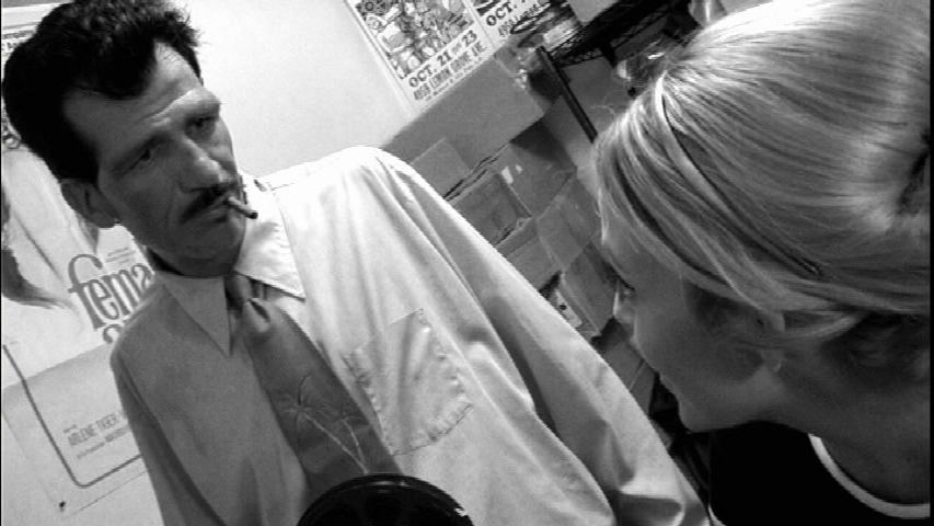 The rest of the cast plays it relatively straight without any winking at the camera, which is as it should be, while director Jared Masters (who earlier helmed the gaudier Climb It, Tarzan) shows an affectionate eye for the decadent side of Hollywood wannabes (which today remains about the same in spirit if not appearance). Several of Masters' regular players pop up here (many of them also in his horror film Slink), and you can also spy the film's production designer, Adam Trash, in a weirdly looped cameo near the beginning as a peep projectionist. The independent release from Frolic Pictures (available as a made-on-demand DVD-R from Amazon) looks fine