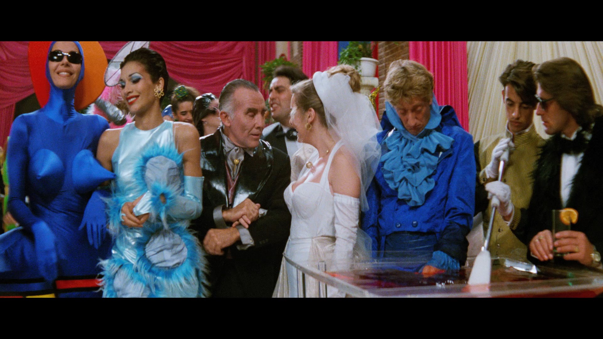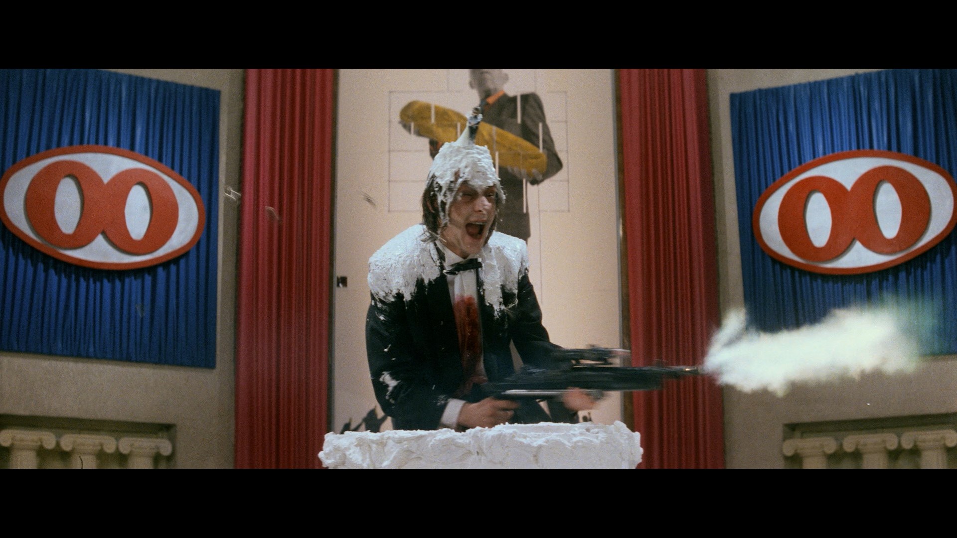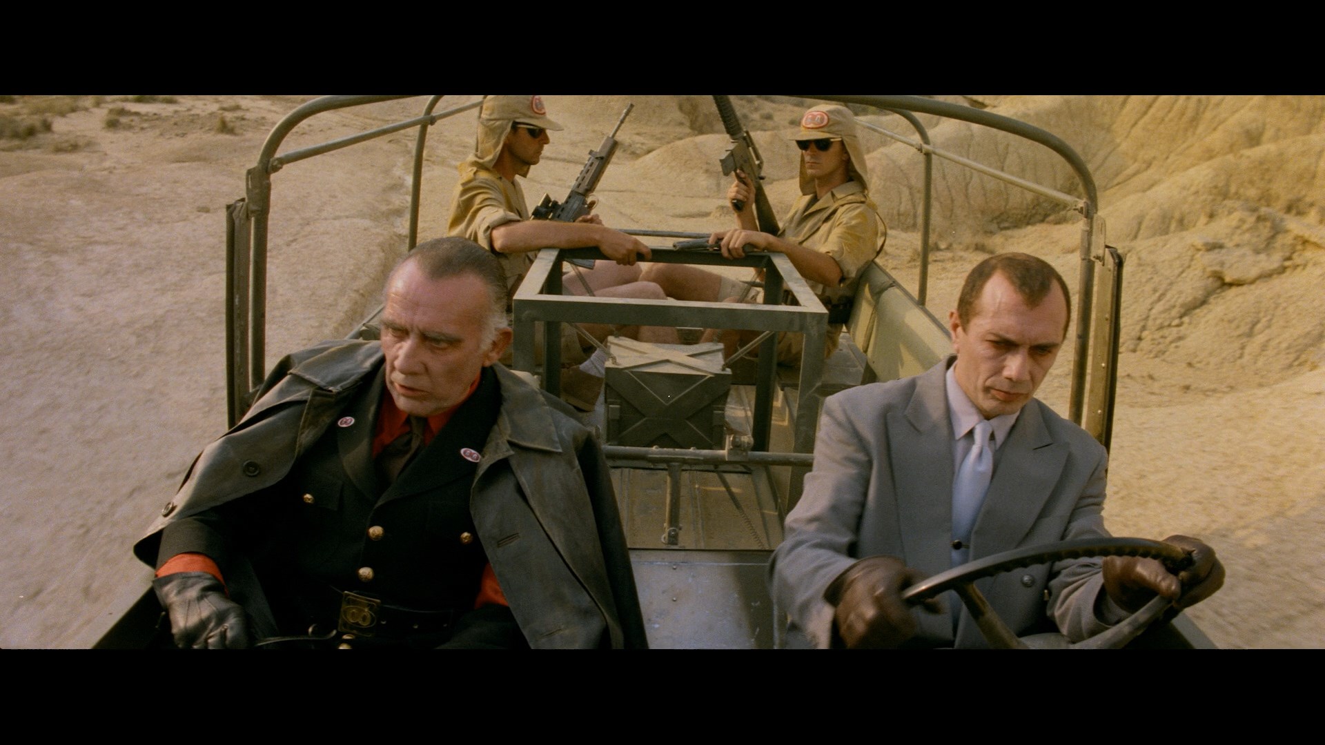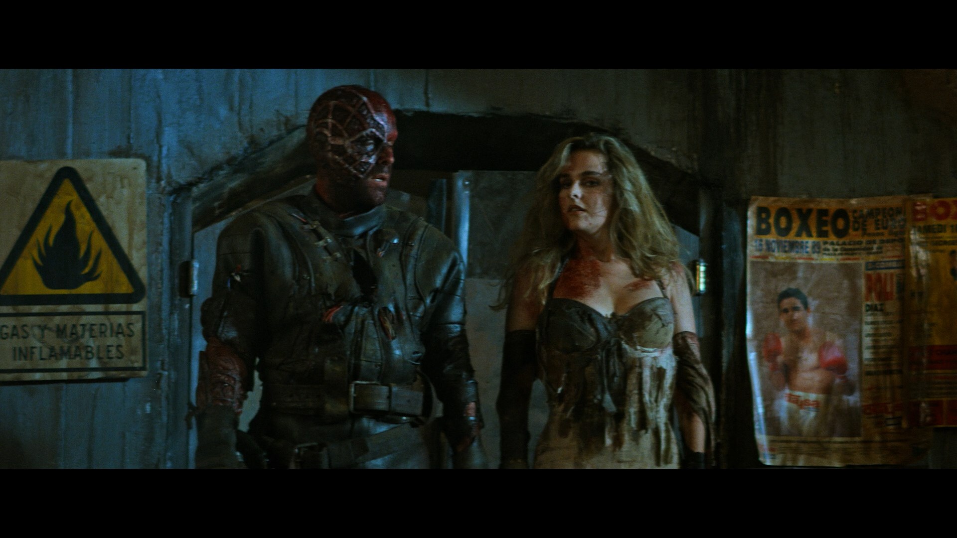 The 2022 Severin Films edition featuring a 4K UHD and a Blu-ray is the first time the film has ever gotten a legit American release, and it's obviously the one to grab as it looks and sounds the best of them all. The transfer looks about as good as this scrappy, intentionally resolution-skipping production possibly could, and audio options include active Spanish Dolby Atmos, DTS-HD 5.1 and 2.0 options with English subtitles. Amusingly, they've replaced that troublesome Mission: Impossible music in a couple of spots with something that sounds as close as possible without getting into legal trouble. It's unlikely most folks will even notice the difference. It's also worth noting that this is not the same HD presentation as the Spanish Blu-ray, which boosted the saturation in some shots and digitally erased the frequent single-frame debris visible at the splice points of many shots (which was present in previous releases). Virtually invisible in motion to the naked eye, that tic is apparently part of the original negative as it's back on the U.S. disc and more in line with other video editions out there. A really hilarious commentary is provided with English subtitles with participants including Iglesia, writer Jorge Guerricaechevarría, producer Esther Garcia, and production designers José Luis Arrizabalaga and Biaffra. This one is absolutely worth the sit as they swap quips nonstop right from the