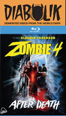 Now here's where things get confusing. Most fans first saw this film via Japanese video as After Death; then a passable but drab transfer popped up on British DVD as Zombie Flesh Eaters 3 (since Zombi 3 was retitled Zombie Flesh Eaters 2; got that?). Then we had the first DVD edition in 2002 from Media Blasters, which is called Zombie 4: After Death. The anamorphic presentation is colorful and features nicely rendered black levels (a first for this title), though the deliberate soft focus photography in some shots translates to an erratic presentation. The packaging promises a trailer and an interview with Fragasso (14m14s), which turns out to be a solid, 17-minute discussion which dovetails directly from his interview on the Zombi 3 disc. He explains the genesis of the film and the location shooting in great detail and seems to offer a reasonable presentation of the industry during that period. However, a few unadvertised bonuses turn up as well. Daly appears for a very brief (2m53s) on-camera interview; she seems pleasant enough but her recollections are limited. However, the most unexpected extra turns out to be a video interview (6m16s) with Stryker, who looks like he was caught on the way to his car in L.A. He explains how he was hired because uncredited producer Werner Pochath (the late, great Eurosleaze character actor from Mosquito and The Cat o' Nine Tails) was a big fan of his porn work, then repeatedly characterizes his performance as "runnin' around in the jungle, lookin' freaked out!" Along with some liner notes (in illegibly tiny print), the usual Media Blasters tie-in trailers are also included.