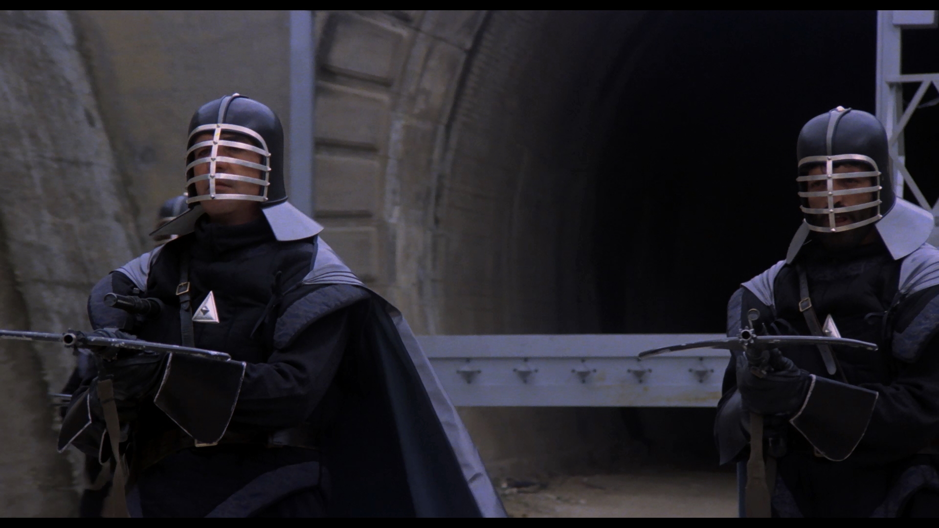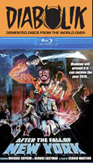 repressed without it. That revised disc stuck around for several years and also made it into a "Post Apocalyptic Triple Feature" set with Enzo G. Castellari's 1990: The Bronx Warriors and The New Barbarians.