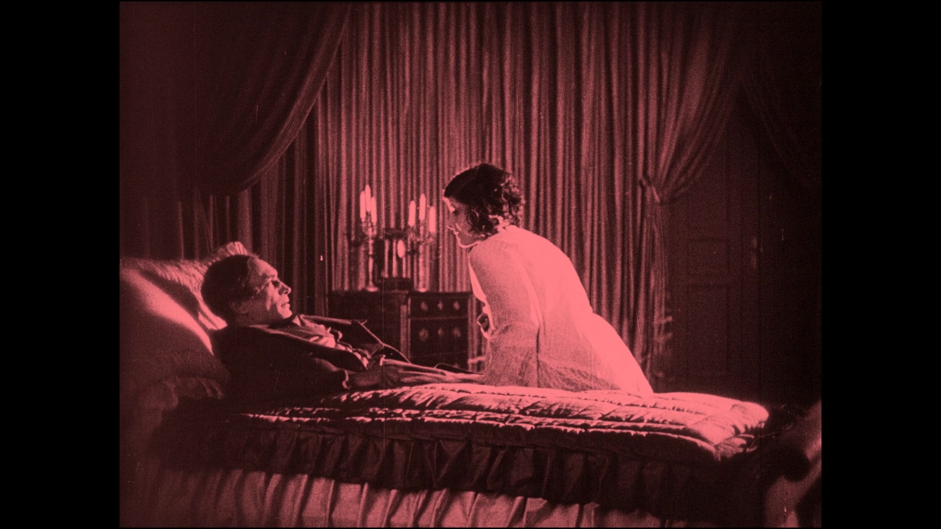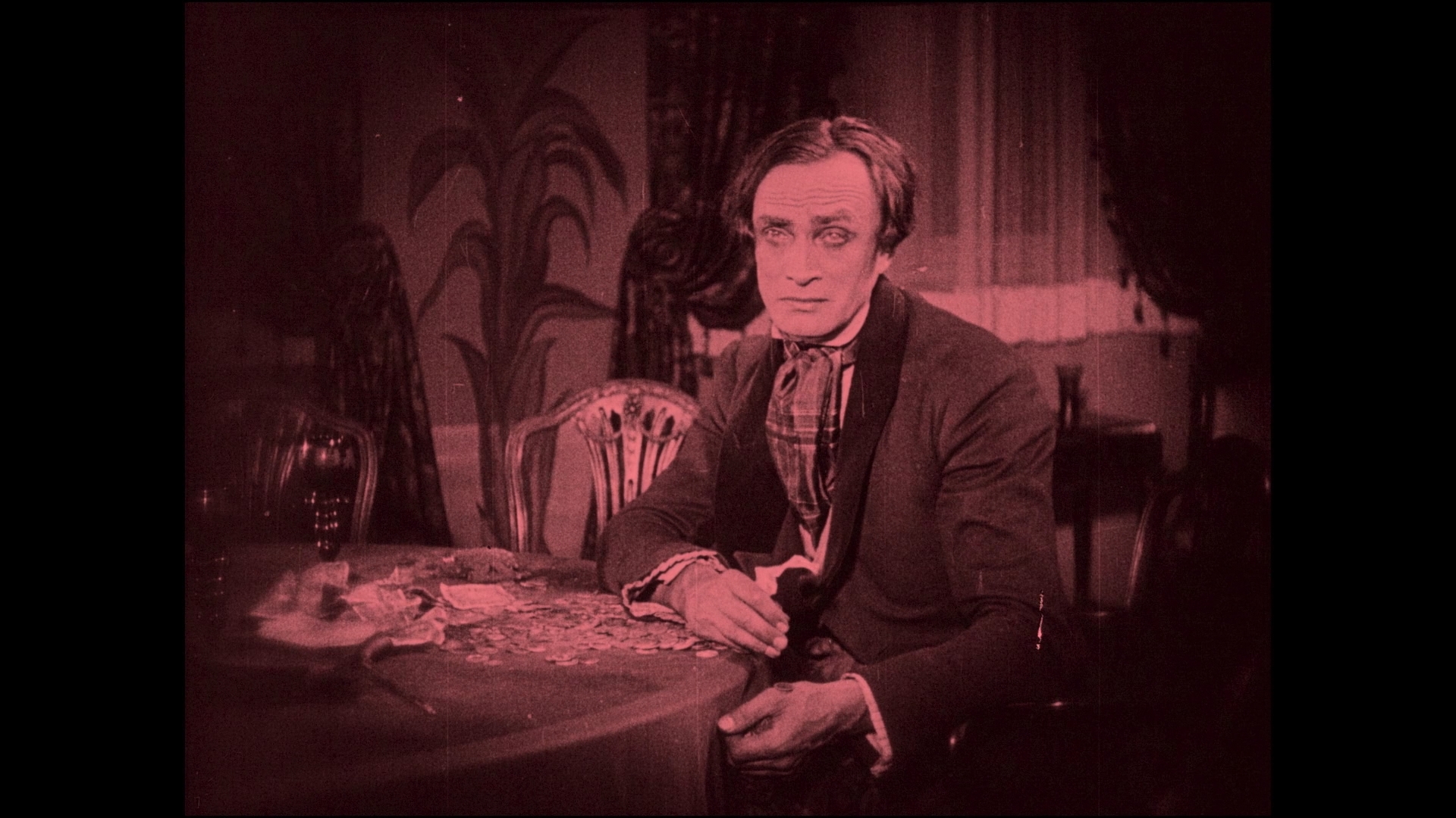 Each film is given its own disc and has a dedicated audio commentary by Jan-Christopher Horak, former director of the UCLA Film & TV Archive and the Filmmuseum München, who does an excellent job of balancing historical tidbits about the cast, crew, and various versions with readings of the use of visual language and thematic elements to deliver unique interpretations of the familiar stories. A two-part videoconferenced interview with Stefan Drössler of the Filmmuseum München and Deaf Crocodile's Dennis Bartok (40m12s and 56m23s) is an enjoyable chat covering the museum's founding, its collections including rarities from Orson Welles and Soviet 3-D artifacts, the preservation of Galeen's films, and the importance of these films in the silent German canon. Also included is a 15m40s fragment from 1924's Dangerous Clues (Auf Gefahrlichen Spuren), an early thriller written by Galeen in which he also appears as an actor in this lighthearted crime thriller. The set was also released in a limited edition (which sold out in record time) featuring a slipcase by Dave McKean and a substantial illustrated book with an essay by Galeen ("What a Pity That We Should Die at 50") about the making of The Student of Prague, an essay by Felix Panten ("Strolling Around a Film") about being on the set of Alraune, a new study by Stefan Drössler about the director's career, an essay by Michael Farin ("Hanns Heinz Ewers: The Vampire in a Völkisch Prostitute's Bed") about the noted actor and writer behind Alraune, an essay by Ewers ("The Cinema and Me"), sample print reactions to the films including a note on the main deleted Alraune scene, an in-depth study of both films by Water Chaw, and an essay by Stephen R. Bissette about the director's final years.