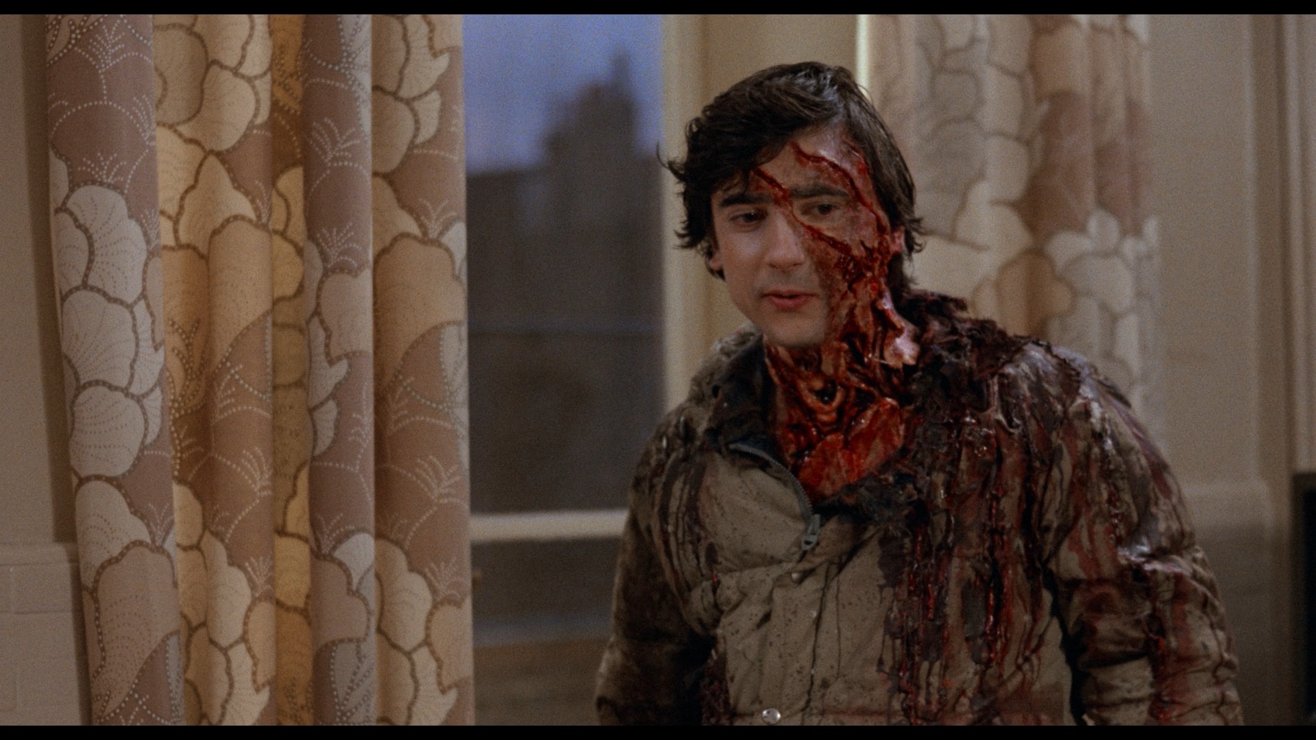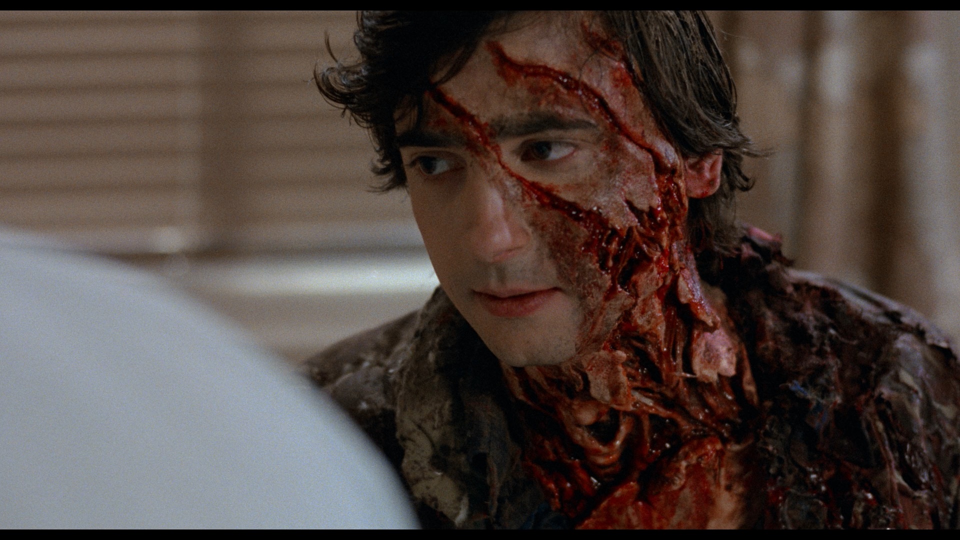 The first Blu-ray release (a "Full Moon Edition" came out in 2009 from Universal, featuring a VC-1 encoded transfer that pleased few with its soft, drab look and heavy, unnatural-looking grain, though that would have been even worse had the studio DNR-ed it to death like other catalog titles around the same time. That edition also featured a DTS-HD MA 5.1 track that's fairly entertaining with some nice manipulative surround effects, but the superior and more effective mono mix was nowhere to be found. That release ported over everything from the DVD, namely "Beware the Moon," "I Walked with a Werewolf," the vintage promo, Landis and Baker interviews, "Casting of the Hand," outtakes, storyboards, photo montage, and Naughton-Dunne commentary. In 2016, a "Restored Edition" popped up on Blu-ray with the same extras and a transfer that sparked its fair share of controversy due to more fine detail and robust colors but significantly less grain that had some crying foul.