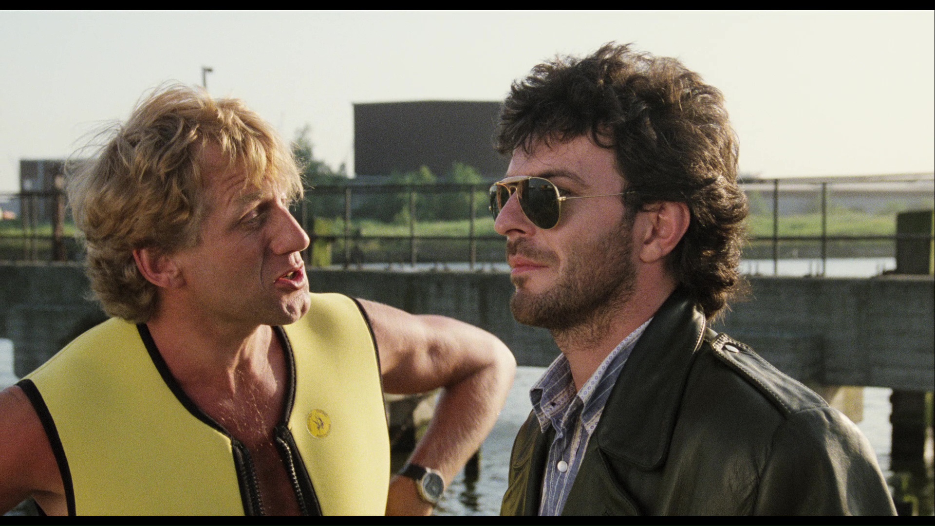 also heavy on the cop thriller conventions and even features a spectacular mid-film boat chase across the city that outdoes the already epic one in Puppet on a Chain. It's helpful going in to know that this isn't really a whodunit; the killer's identity isn't something you're supposed to guess and comes a bit out of left field, so just sit back and enjoy the cheap thrills without thinking about it too hard. The very strong cast goes a long way to sell the conventional material, with Stapel and van de Ven having plenty of chemistry and giving it all more weight and charisma than the usual cop/damsel in distress dynamic. It's little wonder the film became a hot property for Vestron, who released in dubbed in theaters and in separate dubbed and subtitled versions on home video (on VHS and in a slightly letterboxed laserdisc via Image Entertainment). Though the Dutch track is preferable, the English dub is actually quite good as far as these things go since most of the leads spoke excellent English and provided their own voices.