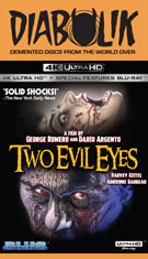 Several DVDs of Two Evil Eyes have circulated through different countries containing the standard two-hour cut which played theatrically and was released on laserdisc by Media. The first no-frills U.K. DVD from Arrow has a solid 5.1 mix from the original Dolby Stereo stems, while the U.S. double-disc set goes one better with six channel DTS-ES and 5.1 EX mixes to boot. The difference isn’t that radical as the film doesn’t have a terribly aggressive mix, but audiophiles will want to take note. More significantly, the U.S. disc contains a few extra frames during the pendulum sequence, lingering longer on the split torso. It doesn’t add up to much more than an eyeblink's worth, but technically the extra footage is there. However, the first U.S. disc is mysteriously missing a line of dialogue at the end of the film, in which the gagging police officer reels back from the opened wall and, beginning to wretch, gasps out, “They’re eating her!” (You’ll have to see the film to understand what that means.) On the Blue Underground disc, the cop simply turns away and a quick “—er!” is heard on the soundtrack, in each audio mix. Disc one contains the main feature along with an international theatrical trailer (not present on the other discs); apparently the US trailer has disappeared for good, though it’s not much of a loss.