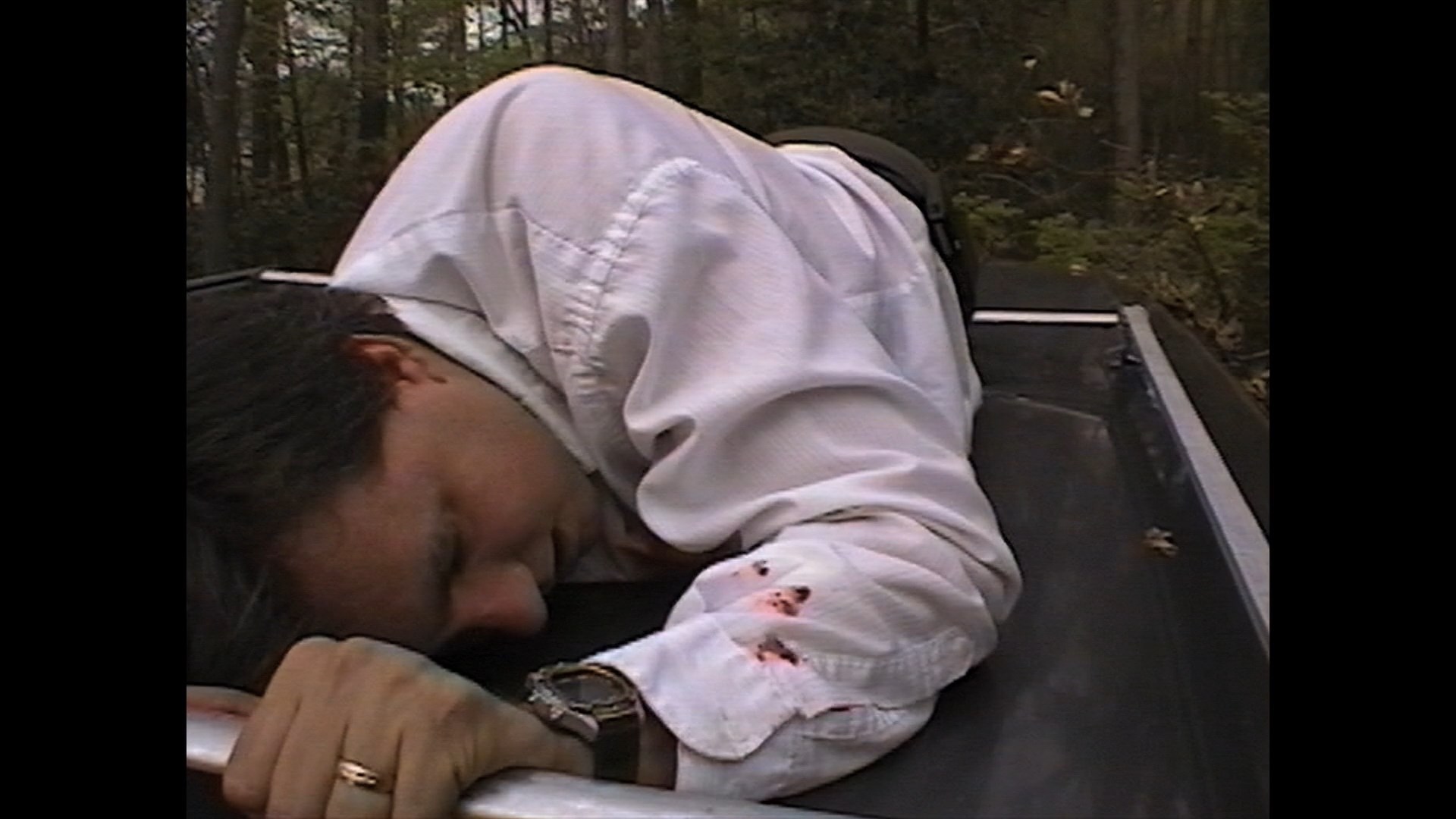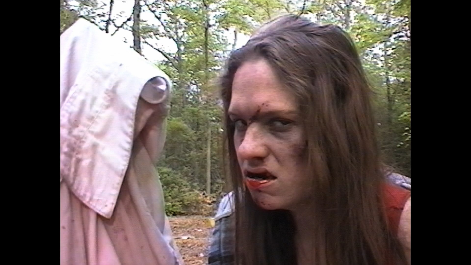 Barely circulated on VHS back in the day and bootlegged over the years, the film has been given a new lease on life via the Saturn's Core Blu-ray featuring the final digitally edited version of the film (with or without a 5m57s Castiglione video intro) looking and sounding as good as the original conditions will allow. It's very SD of course but fine for what it is, and the DTS-HD MA English 2.0 mono track sounds fine with optional English SDH subtitles provided. An audio commentary featuring Castiglione moderated by Ross Snyder from Saturn’s Core covers the genesis of the story, the custom work for W.A.V.E. at the same time, the run-in with a cop that upset Murphy during the shoot, promoting the film at horror conventions (where Murphy got a thumbs up from Tom Savini), Backwoods Marcythe Backwoods Marcycreation of a new 10-minute twist ending with W.A.V.E. cohort Pamela Sutch (complete with one of the greatest lines of dialogue in movie history) to get the film up to feature length, and the high number of W.A.V.E. women who directed their own micro-budget films. Also included is the original archival analog VHS cut of the film (72m40s) which features a different, clunkier opening and some other variations throughout including some alternate takes. It's a very lo-fi experience to put it mildly but nice to have for posterity. "Behind the Backwoods" (12m5s) features Murphy and Castiglione providing very lighthearted commentary over a reel of production footage, including a funny (fogged-out) wardrobe malfunction and some other random bits of business. Also included are the original trailer and bonus ones for Love Is a Stranger Again, Deep Undead, Mail Order Murder: The Story of W.A.V.E. Productions, Psycho Sisters, Duck! The Carbine High Massacre, Sinistre, Red Spirit Lake, We Await, and Shatter Dead.