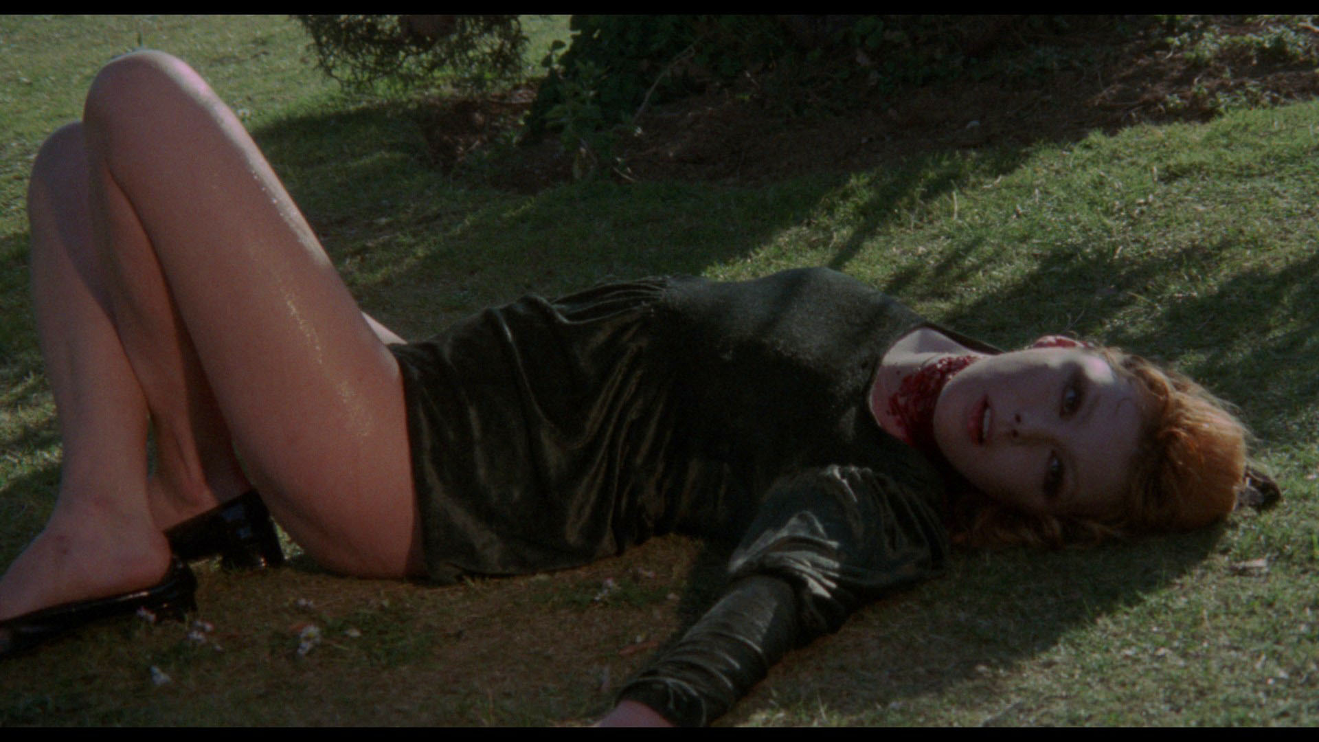 rippling textures of the bay waters (even when strewn with corpses) to the macabre ocher glow behind a glass door during Renata's standout victim scene. The cheeky gore effects still shock today, including an unforgettable facial machete application, a unique shish-kebab variation, and a startling beheading, all laced with some '70s-styled helpings of nudity and sex. Stelvio Cipriani's deft score wavers between beautifully sustained and creepy beat rhythms (the main titles in particular) to the hilarious upbeat pop pastorale of the end credits (later recycled for Francois Ozon's Potiche!), while the actors all seem to be having a ball before turning up as lambs to the slaughter. (Genre fans, look for an appearance by little Nicoletta Elmi, who also turned up in Deep Red, Flesh for Frankenstein, and Bava's Baron Blood, among many others.)