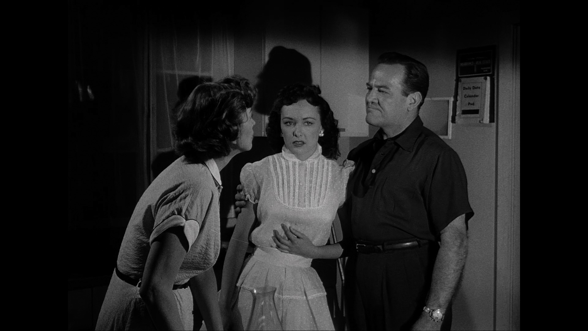 Detail increases nicely with a more refined and natural presentation of film grain (which looked a bit softened on the DVD), and blacks are deeper and more impressive here as well. The DTS-HD MA English mono track (with optional English SDH subs) is fine considering the patchwork nature of the audio itself. A very in-depth and rewarding audio commentary by Tim Lucas really tears into this one as a study in postwar alienation and fear of failure, a reading borne out by the hero's own narration and the events in the film. He also fills in the strange history behind the film including its origins as a script called The Unseen, the reason it ended up being shot non-union out in the desert, and the backwards marketing tactics that ended up selling the film and its poster before it was even shot. There are some extremely long silent gaps here, though that may be due to the same factors involved in other MGM-connected audio commentaries over the past year or so (to put it tactfully). A dupey theatrical trailer is included along with bonus ones for The Monster That Challenged the World, Invisible Invaders, Donovan's Brain, The Magnetic Monster, and The Black Sleep.