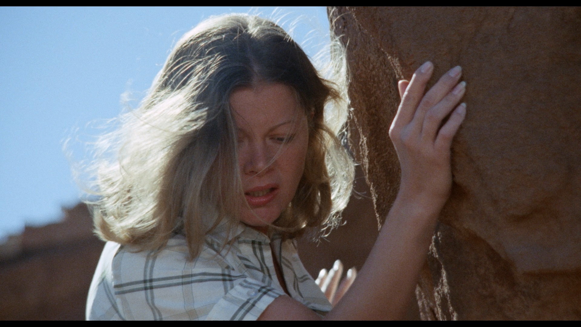 made around that time, the elements have been kept in impeccable shape and boast that bright, saturated look familiar from the era. That means the obligatory Blu-ray edition from Vinegar Syndrome in 2020 (which comes with a limited embossed slipcover reflecting that bizarre but striking original poster art) is another visual winner from the Crown library, sporting a new 2K scan from the 35mm original camera negative. There's really nothing to fault here from an a/v standpoint at all; it looks very true to the source with excellent detail, natural film grain, great color, and a clean, clear DTS-HD MA English mono track with optional English SDH subtitles. Four new video interviews are included -- "Making Friends" (13m24s) with Nosseck, "Movies and Travel" (32m47s) with cinematographer Stephen M. Katz, "Educate Yourself" (15m10s) with editor Robert Gordon, and "A Lifetime of Music" (10m57s) with composer Rick Cunhaall -- of which touch on their early career stages at that point, the allure of making a feature requiring only "four actors and an RV," and tangential topics like biker films, Switchblade Sisters, country and western music, and Jennifer Warnes. The theatrical trailer is not included but can be found on 42nd Street Forever: Volume 4.