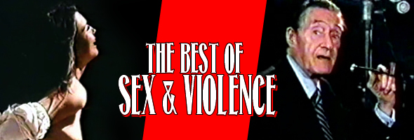 e trailer compilation, a quick and easy way to put a profitable release together with a host to tie it all together. From Mad Ron's Prevues from Hell to clip-filled cousins like Terror on Tape, these grab bags of bite-sized sleaze made for excellent party tapes and also spawned the DVD compilations we know and love today. Wizard entered the fray in '81 with one of the rarest and best-loved early trailer comps, The Best of Sex & Violence, whose title doesn't come close to applying to all of its contents unless there's some subversive slant to The Doberman Gang that isn't readily apparent. Titles here leap all over the map including familiar trailers for hits like Zombie, The Boogey Man and I Spit on Your Grave and much more rare ones like the Edy Williams skinfest Dr. Minx, the lurid She Devils in Chains, and the unbelievable Tanya's Island featuring naked pop singer Vanity and a horny gorilla. There's a fun triple header of naughty fairy tale spoofs (the X-rated Alice in Wonderland with Kristine DeBell, Fairy Tales with Linnea Quigley, and Cinderella with Rainbeaux Smith), Stephanie Rothman drive-in favorites Terminal Island and Working Girls, Joe D'Amato's Emanuelle Around the World, Filipino madness with The Twilight People and Beyond Atlantis, and the sexy biblical Spanish antics of The Sin of Adam and Eve. If that's not enough, you also get two Rudy Ray Moore classics (Dolemite and The Disco Godfather), The Devil's Wedding Night, the kinky Sweet Sugar, Dr. Black and Mr. Hyde, Bury Me an Angel, The Manhandlers, Truck Stop Women, Ebony Ivory & Jade, and two Band productions, Tourist Trap and Tunnel Vision.