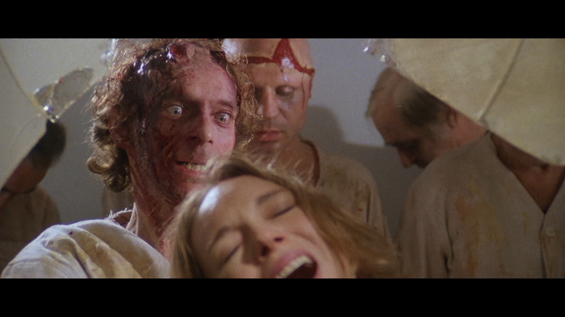 In 2011, Arrow Films took a stab at the film for a much-touted Blu-ray and DVD release in the U.K. complete with a fresh transfer from the original Italian negative. The initial release was plagued with a faulty initial pressing in which the sepia-toned prologue was incorrectly presented in black and white, and the entire film and extras were crushed down to a single BD-25 disc. That was quickly corrected, and the troublesome discs have been gone for ages. The transfer looks pretty good but has been subjected to some hit and miss noise reduction, with an occasionally noisy texture in outdoor scenes. It's far better than the more disastrous Italian-sourced HD mishaps out there (and a few notches above the crummy House by the Cemetery, thankfully), but there was still room for improvement. Audio options are similar with English 5.1 (DTS-HD on the Blu-ray), plus English and Italian mono with subtitles. Extras include the Warbeck/MacColl commentary, an additional one with Fulci's daughter Antonella (who was a teenager at the time and has a lot of stories to share), a 26-minute interview with Monreale, a 2010 appearance by MacColl for a screening in Glasgow The Beyond(for a 21-minute Q&A), and the usual elaborate reversible packaging including a written fan piece by Eli The BeyondRoth and a Cliver interview by Calum Waddell.