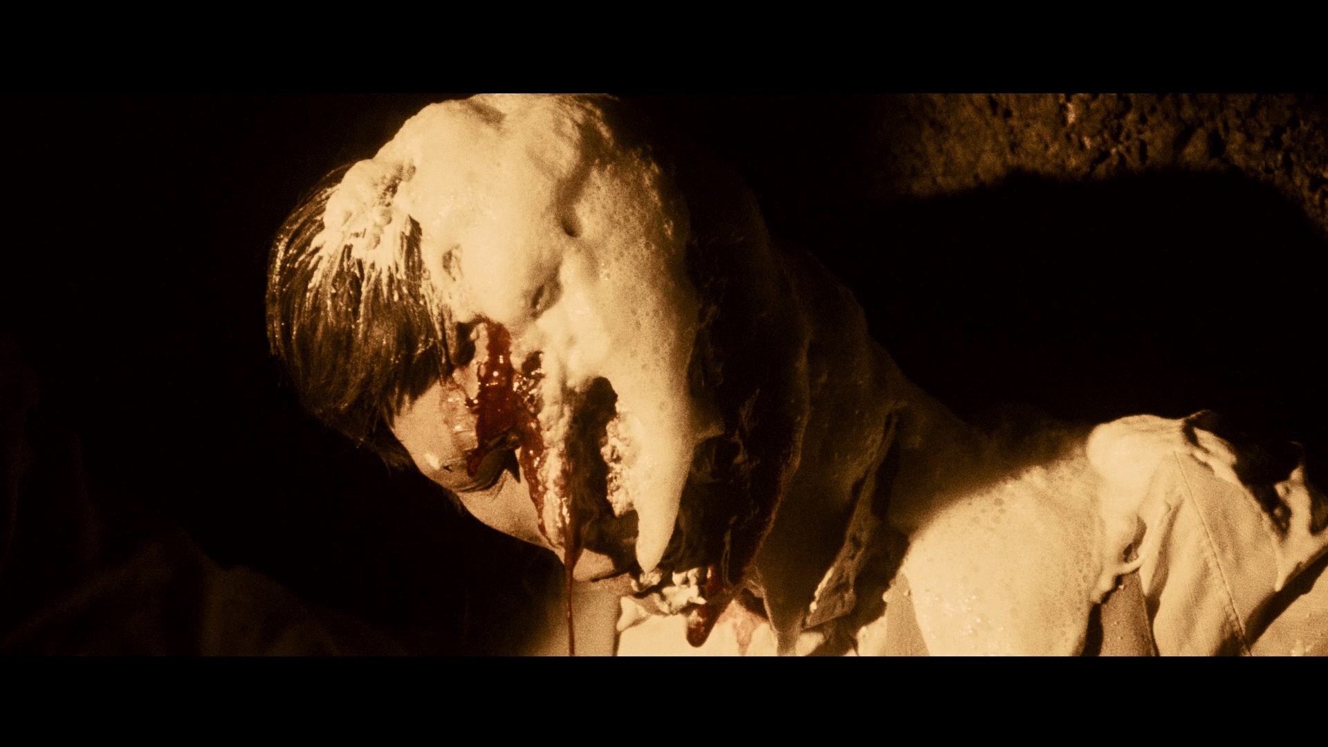 In late 2019, the U.K. got another Blu-ray of Fulci's classic courtesy of Shameless Screen Entertainment complete with a much-touted new 2K scan. The difference here is obvious right out of the gate as it features much finer detail and nicely textured film grain, with a fresher overall appearance and a stronger sense of depth. Whether more could be wrung out of it with a 4K scan down the road remains to be seen, but this is handily the best the film has looked on home video to date. Perhaps the most interesting wrinkle here is the option to watch four different variations of the prologue: the familiar sepia version, the black-and-white alternate, the original color footage, and a new approach working from the color footage with the sepia tone applied while keeping some burst of red and bright gold where applicable. It's an interesting experiment and quite atmospheric, so give it a spin and see what you think. The DTS-HD MA audio options include the English track (the 2.0 stereo remix; sorry, no original mono here) and Italian mono, with optional English subtitles.