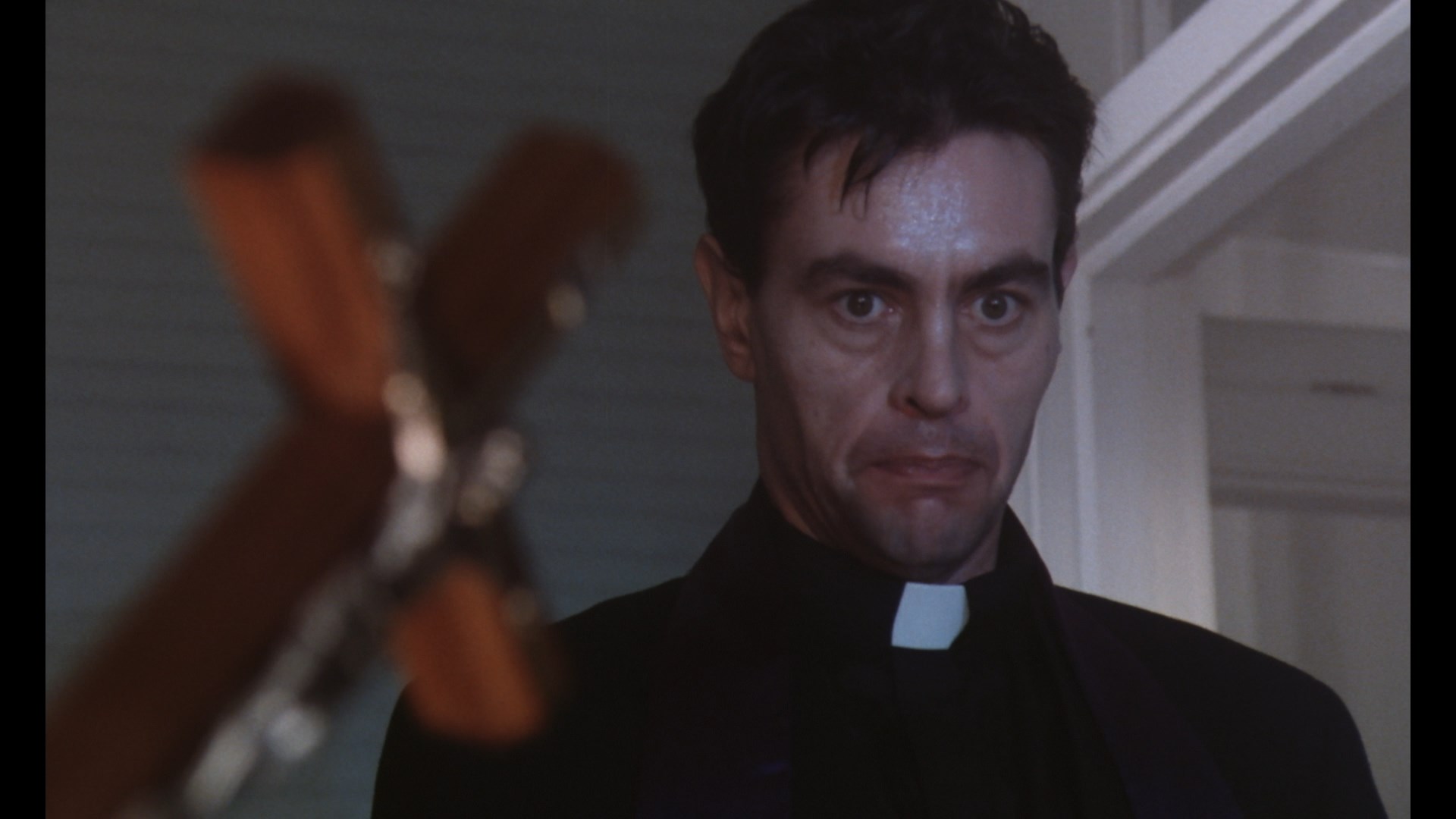 again sees the spirits of her pint-sized victims, which is enough to send him away from the church into a drunken downward spiral. A year later his successor, Father Peter (LeBrock), moves into that familiar Otis House (from The Beyond and Killing Birds, among others) with his wife, Annie (Bingham), and their kids, Martin (Troll 2's Stephenson) and Carole (Walker). Right away Carole's hanging around a giant glowing hole in the wall, objects start moving around, and it becomes clear that Bette is reaching out from the beyond the grave to claim more victims through the house, the site of a mass witch execution. Can Father George offer salvation and fight off his inner demons to help the new arrival and his family cleanse the house, or will the demonic murderer gain the upper hand?