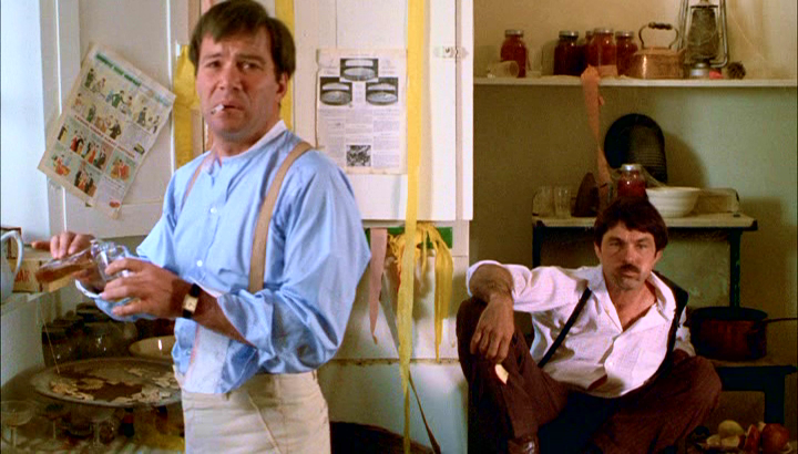 Also included on this double feature disc is Big Bad Mama II, a film that surprised a lot of fans by coming 13 years after the original. Corman didn't normally do direct sequels to his crime films, but apparently the enduring popularity of the original on HBO was enough to put Dickinson back in the lead again. Completely ignoring the memorable ending of the first film (which would seem to completely negate a sequel in the first place), this basically uses the same formula as Wilma and her daughters strike back at the corrupt real estate crooks using the local banks to foreclose on honest folk like herself. Soon she and the girls are off on another crime spree, and while the cops can't seem to catch up, a dogged reporter named Daryl Pearson (Culp) seems to have no trouble pestering them for a news story after every job and eventually winds up in Wilma's