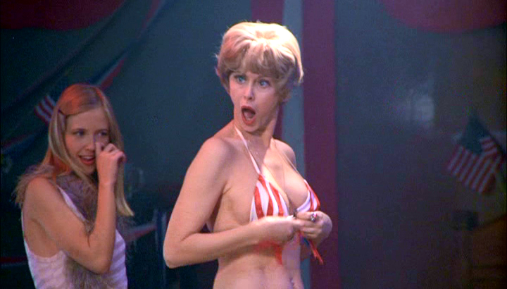 Archie Bunker's Place and Knots Landing) and McCullough (a pretty Playboy model who went on the remake of The Blob and TV's Growing Pains), both of whom seem more like '80s Valley girls who wandered in from the mall than Depression-era farm girls. At least they provide the necessary celebrity T&A here in abundance (including a topless swimming scene that ensured this film's home video immortality), and there's also a peculiar food/bondage fetish scene with the girls and Yagher that tries to outdo the implied threesome sequence from the original. Fans of the original will have to set their expectations much lower here, but for a mindless night's entertainment, you could do a lot worse. Also, the time-leaping twist ending is a lot of fun and arguably the film's high point.