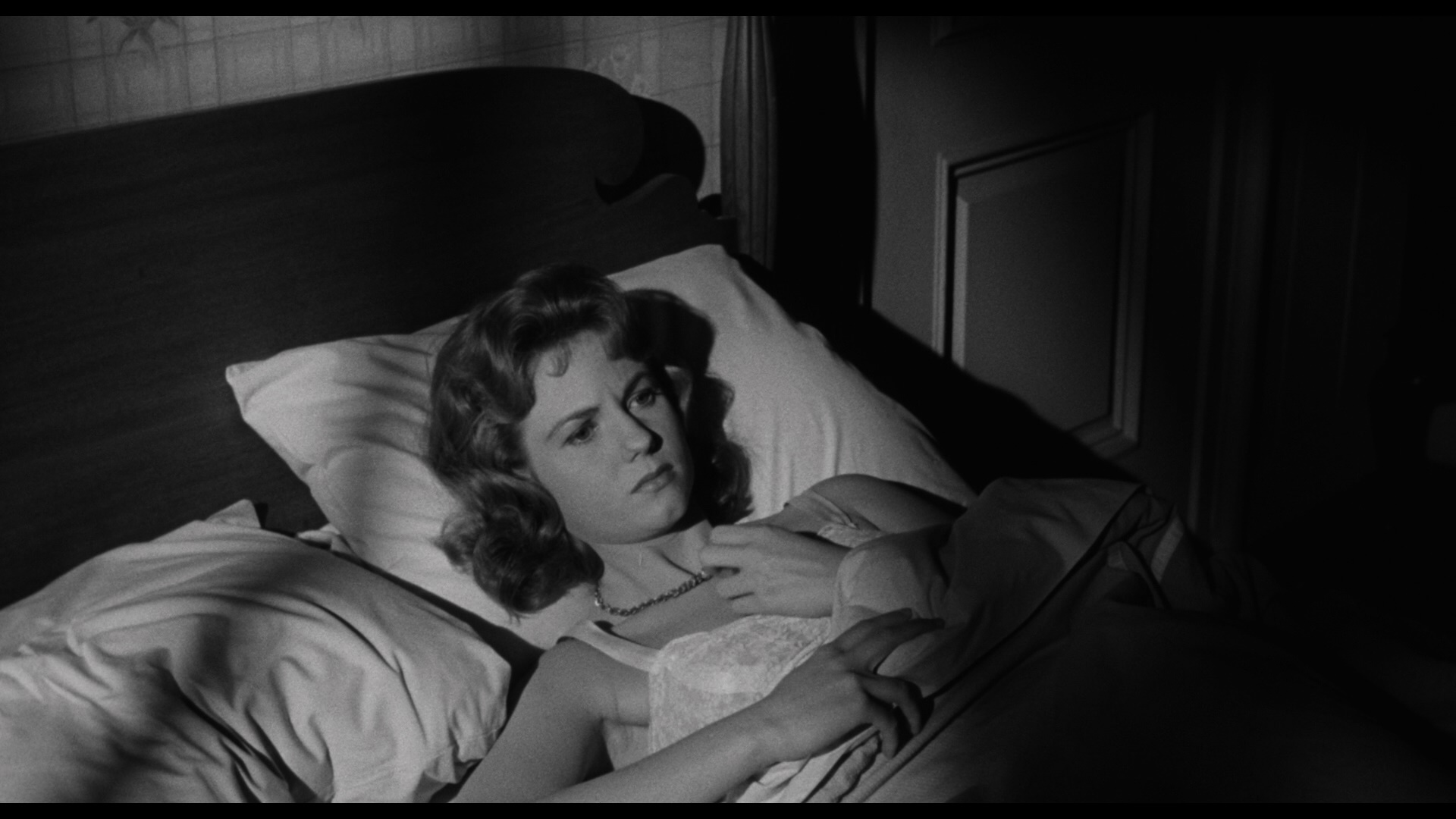little at the end to imperil its lone "good girl" played by Kathleen Hughes. The fact that the men are all deeply unsympathetic (even ostensible leading man Richard Long, a familiar face from everything ranging from The Twilight Zone to House on Haunted Hill) makes things even more interesting as a kind of commentary about entitled behavior and its extreme consequences. Not to be overlooked is the film's use of nifty distorted POV shots during the stalking sequences, a tactic employed in Universal's earlier It Came from Outer Space and just as effective here.