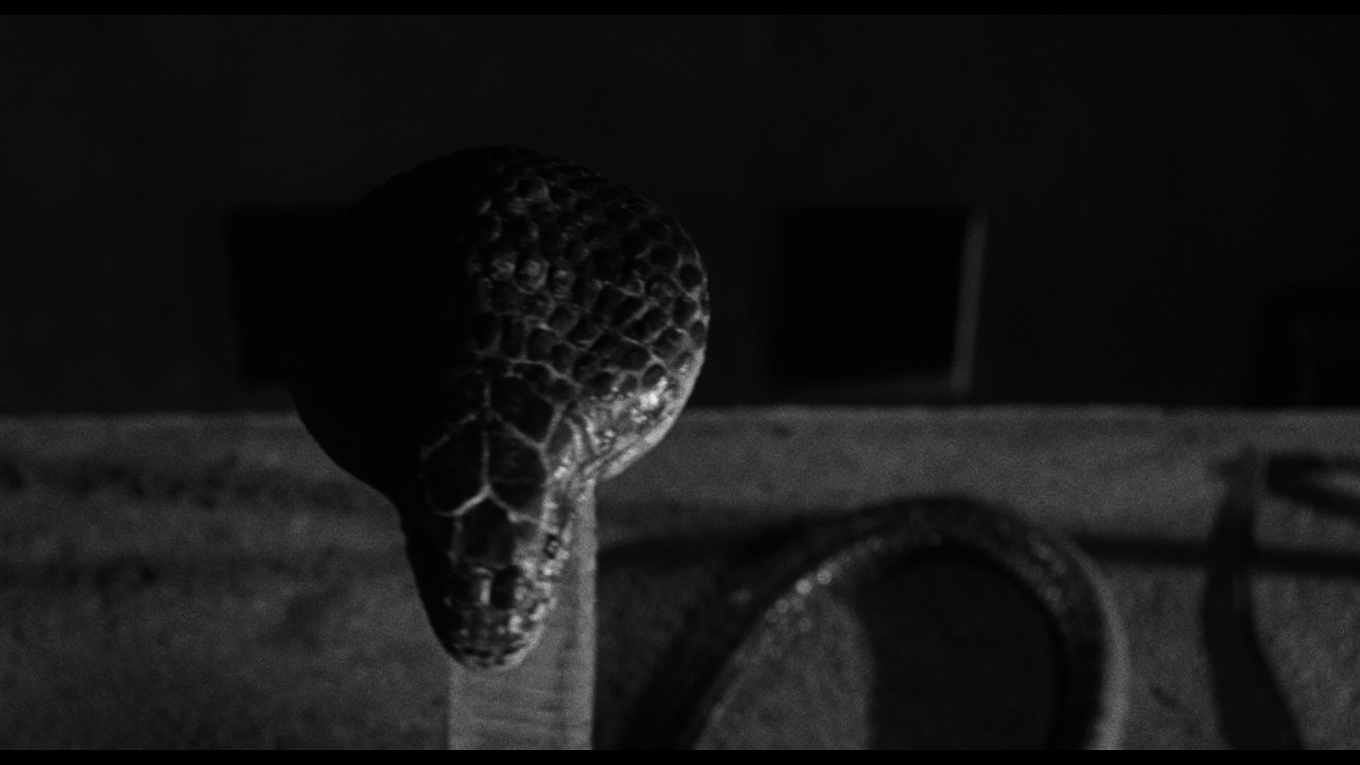 fun with some genuinely oddball plot concepts. For proof, look no further than the next two chronological films in the set starting with Cult of the Cobra, a fascinating little study in domestic anxieties about men who had come home from war and were hitting speed bumps assimilating into society, not to mention a bit of xenophobia when they ended up marrying women from abroad. Of course, you can overlook that subtext if you prefer and just enjoy a fast-paced body count chiller with an unusual approach to its monster material. Paired up on its initial release with Revenge of the Creature, it was also the lone genre entry from prolific TV director Francis D. Lyon for the studio and provides an opportunity to see a young David Janssen (as an ill-fated bowling alley owner) long before he hit it big with The Fugitive.