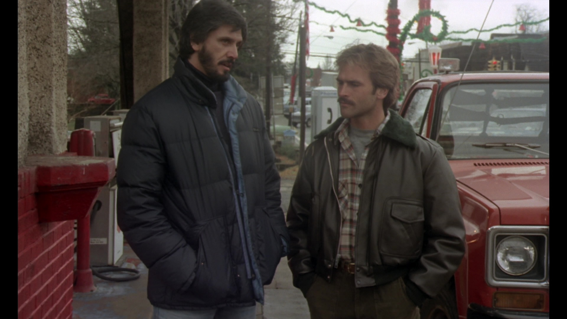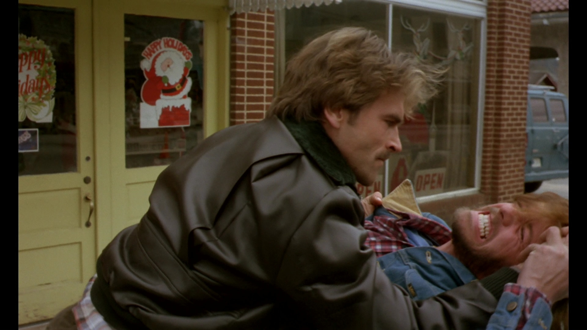 The film can also be played with an audio commentary featuring Sopkiw and moderated by yours truly, so no comments about its quality - but hopefully it will prove informative to fans. Sopkiw is also on hand for an 8-minute video interview about mingling with the locals, using his modest amount of arms training, and the directorial differences between Sergio Martino and Lamberto Bava. The 20-minute "One Against All" featurette has Lamberto Bava giving his say about this work early in his career, noting how it differed from his prior horror work, posed extreme challenges over the eight-week shoot, covering the U.S. newspaper story that inspired the screenplay, and pointing out other influences like The Deer Hunter and Deliverance (whose banjo-playing local appears in this film, too). Also included is a different 12-minute interview with Battaglia ("Vengeance in Blood"), who covers much of the same territory but offers a few digressions including one about Bill Wyman. However, the real keeper here is "Blood Mountain," an unflinching and often hilariously candid 10-minute chat with Eastman (real name: Luigi Montefiori), who starts right off the bat trashing Lamberto Bava and noting his general distaste for most of the "extremely banal and stupid" films he made during this period (as well as Facebook and the widespread ownership of firearms in Georgia). A dupey theatrical trailer is also included.88 FILMS FRAME GRABS