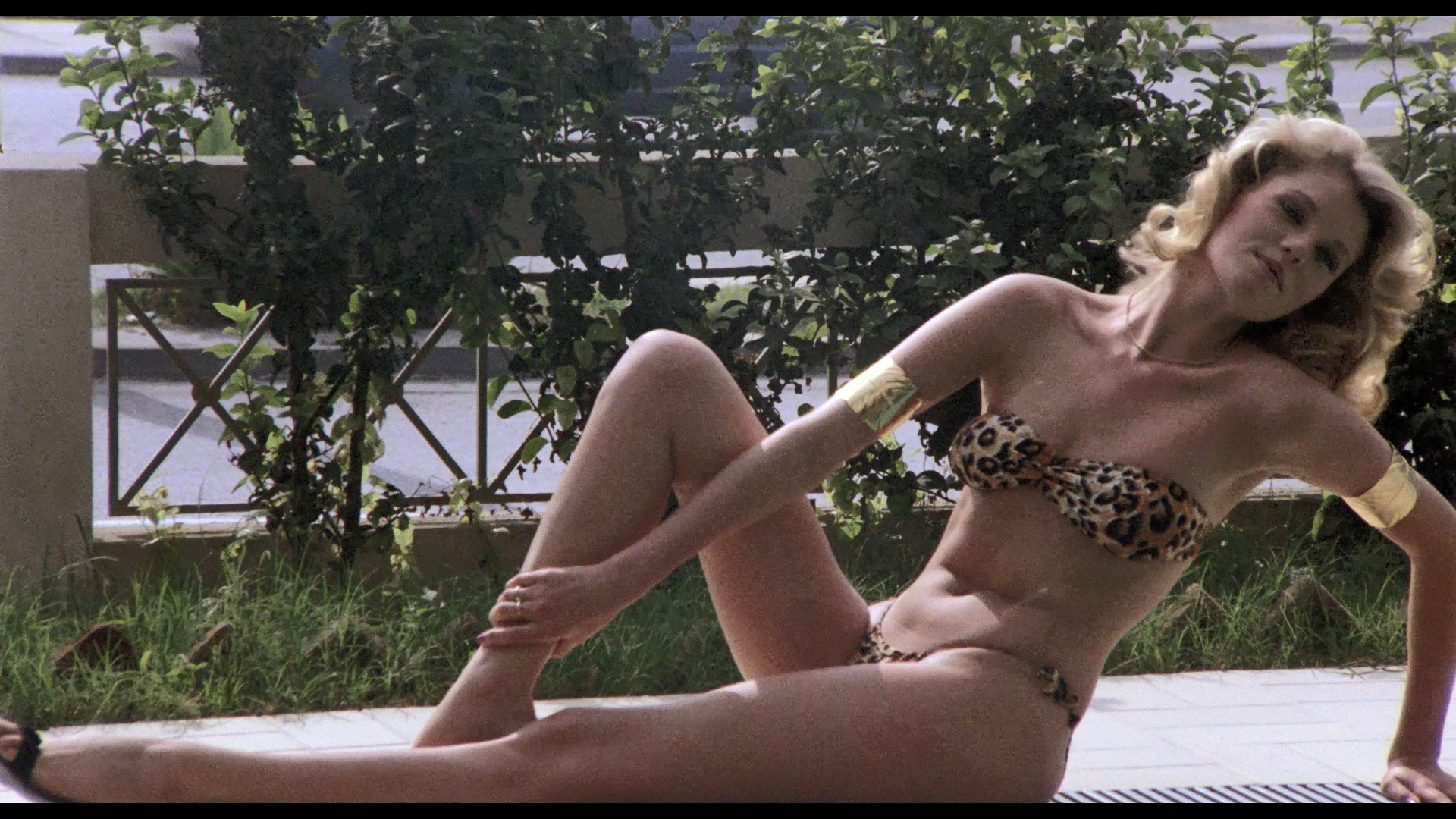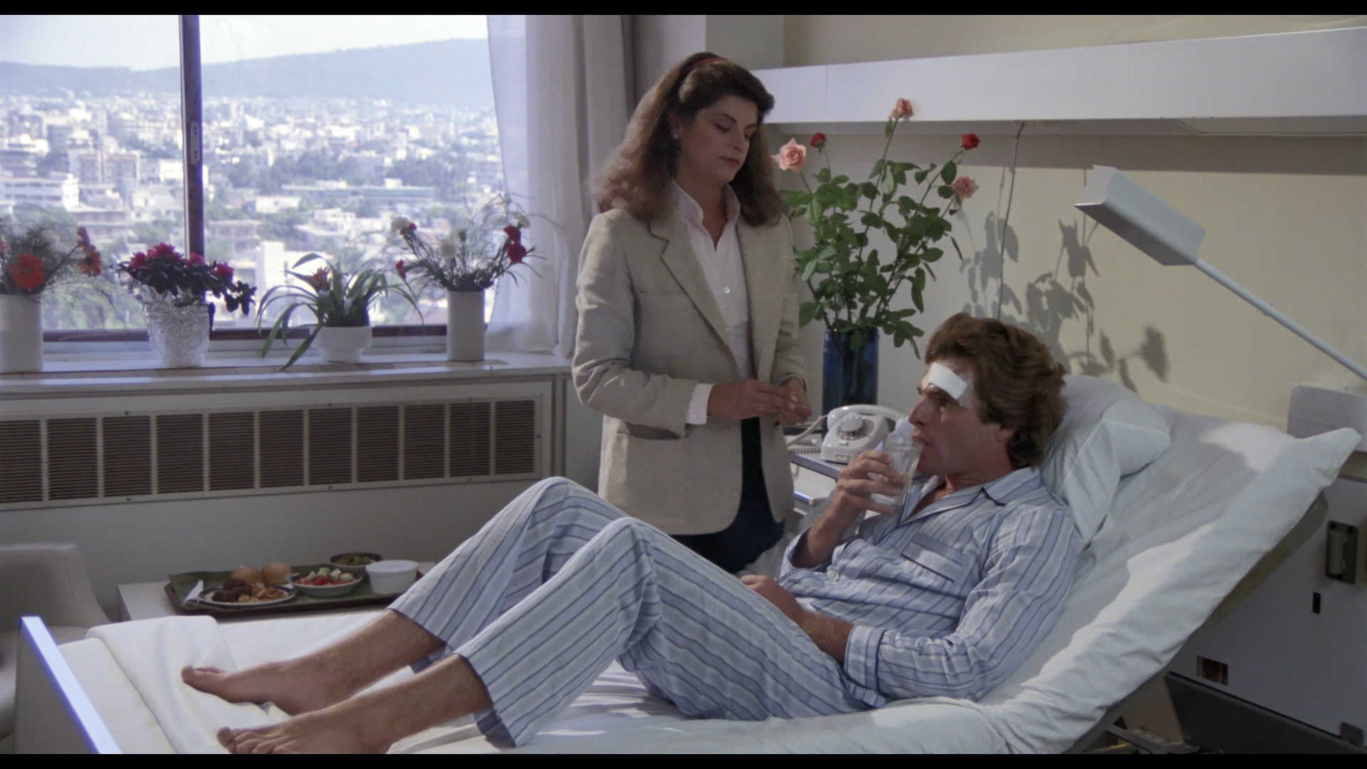 That said, Mastorakis' penchant for fiddling with filters and other video chicanery is still in evidence here; the worst-looking segment of prior releases (an early bit with Bottoms walking around Athens wearing a stunning "I Love My Dentist" shirt) looked like it was on the verge of collapsing before, and it's pretty rough here for some reason. (Compare the second frame grabs below.) That means the inconsistency you see here is likely how the master was delivered, so take it for what it is. The 5.1 remix is presented here along with a more satisfying 2.0 stereo version, both DTS-HD MA. The shorter theatrical cut is also included (1.78:1 widescreen) in standard def from a very dated, shaky source and doesn't make for terribly enjoyable viewing. The "Films of Nico Mastorakis Part One" video is carried over here along with the two music videos, and you also get a different (and very spoiler-y) trailer as well as the older DVD and VHS versions and a bonus one for Nightmare at Noon. New here is a lengthy still gallery (5m34s) complete with the entire, NSFW cast photo spread published in Playboy.