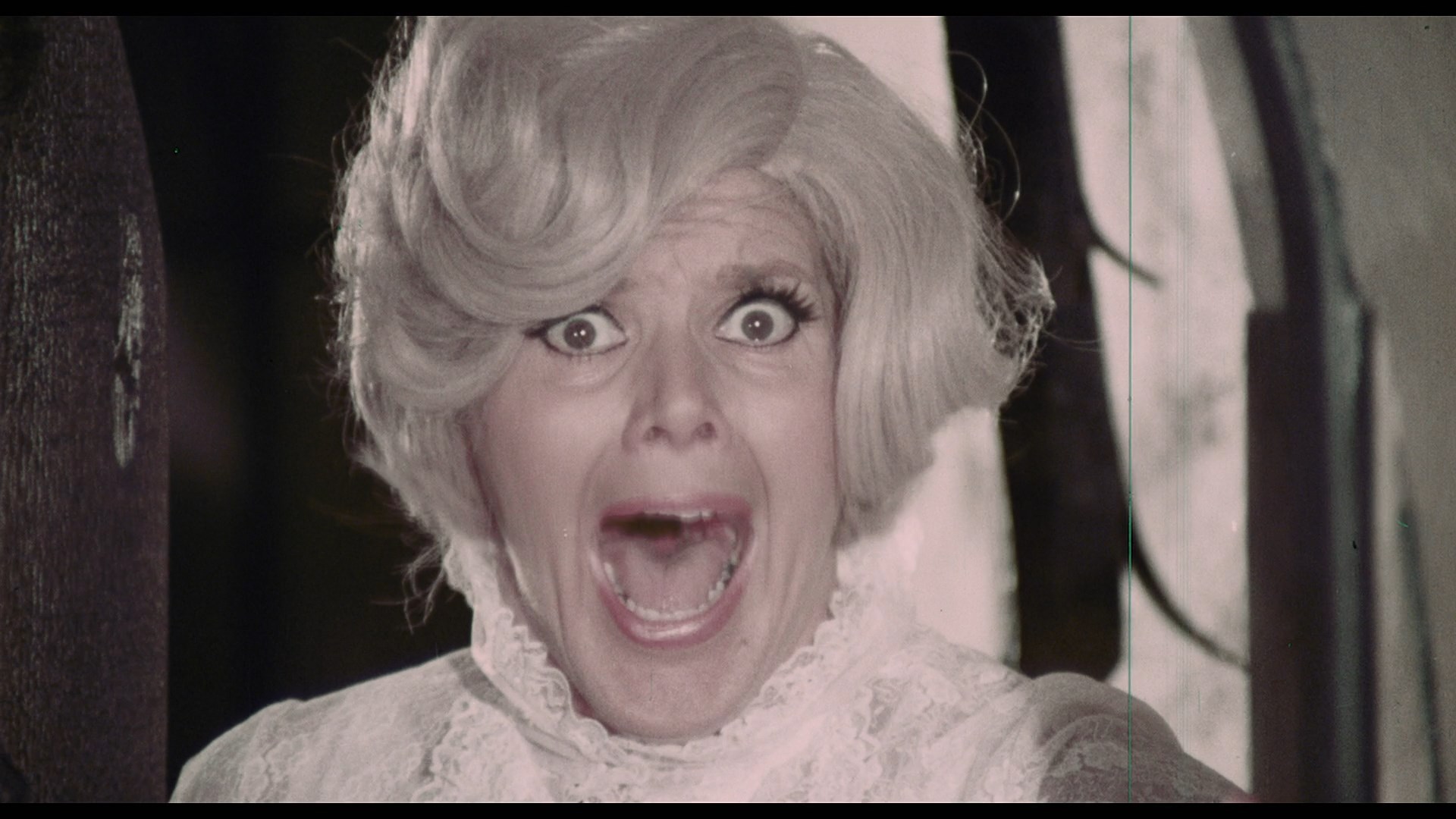 The whole shebang can also be played in one massive 4hr31m4s marathon complete with fun HD-scanned drive-in snipes (with the usual concession stand hawking), plus trailers for Curse of the Headless Horseman, I Saw What You Did (in much better quality than what's on that film's Blu-ray), The Jekyll and Hyde Portfolio (whose crazy trailer was absent on its Blu-ray release), The Wacky World of Doctor Morgus (a slice of regional insanity that would make a great AGFA release someday if it still exists), The Love-Thrill Murders, and Peeping Tom (in B&W),
