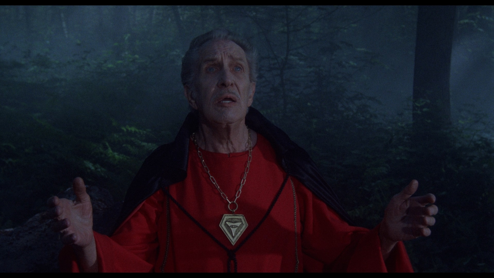 making Bloodbath one of the few happy exceptions. Some of the jokes are still a little too inside to work for many modern viewers, but the tried-and-true horror gags (especially a wild, gory flashback involving a surgery gone horribly wrong) still make this a top-notch cult item. Everett's hit-and-miss performance is a rather iffy way to ground a film, but fortunately he's carried along by a stellar supporting cast including the always-funny Pamela Stephenson (another TV comedy vet best known to US viewers as one of the few good things in Superman III) and The New Avengers' Gareth Hunt, who plays one-half of a gay paranormal-investigating couple. The effects are surprisingly good for the most part, ranging from some Savini-worthy blood gags to ambitious visuals involving a feisty poltergeist, and the imaginative music score by Mike Moran and songwriter Mark London is dead-on brilliant. Of course, the biggest ace in the hole here is the presence of Price as "the Sinister Man," making the most of his limited screen time with some delicious speeches and wonderful nudgings at his classic AIP horror days. The whole thing's more than a bit disjointed and will never be mistaken for high art, but as a late night party selection, it fits the bill just fine.