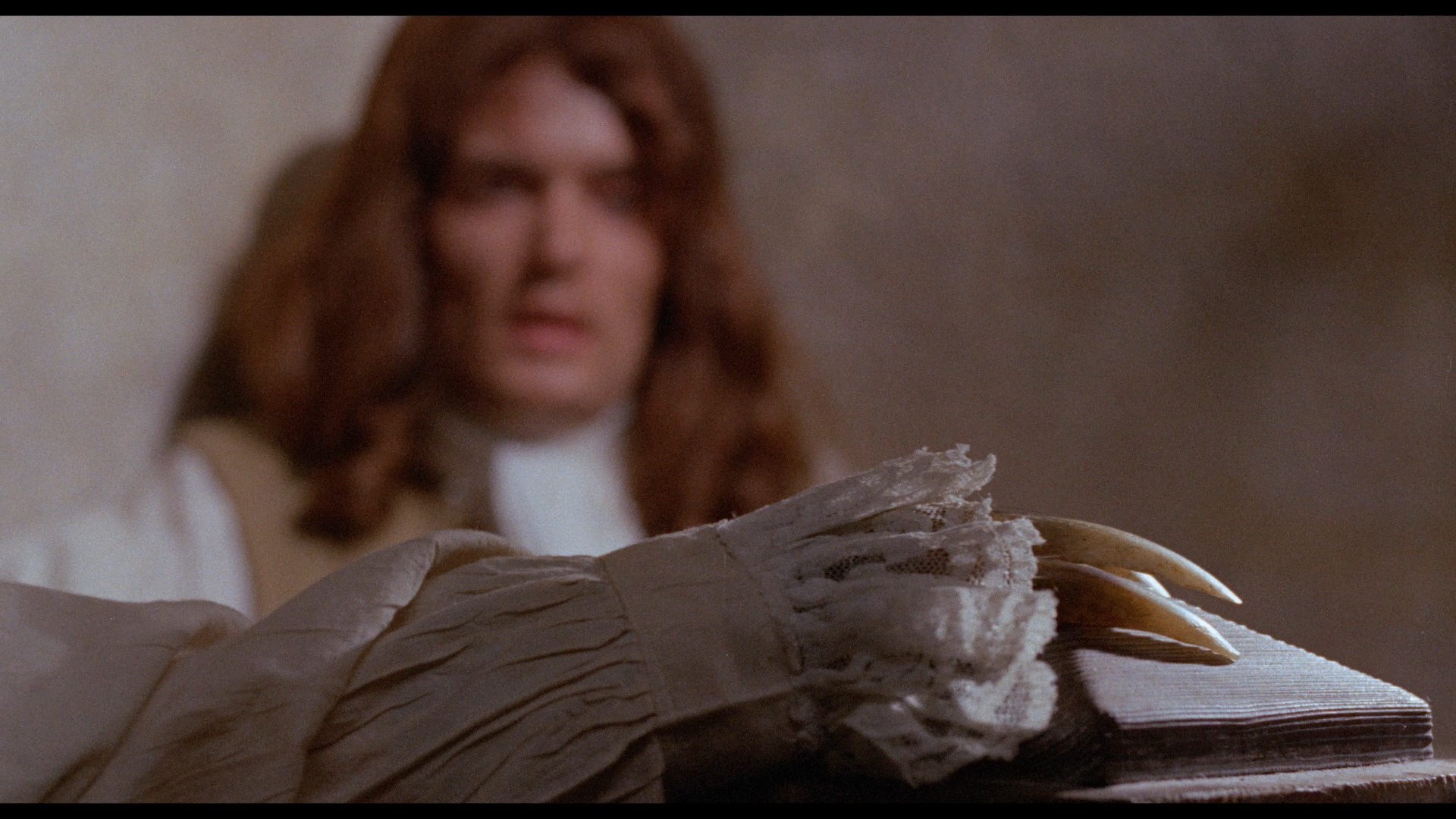 In 2019, Screenbound revisited the film for U.K. home video with a new remastered edition featuring a transfer from a new 4K scan of the camera negative, with a Black Friday release following in the U.S. from Severin Films a few months later. Incredibly, the Severin disc is the first commercial release of the film in nearly two decades for American audiences! The Severin Blu-ray (which also features a bonus soundtrack CD, a nice addition since the standalone disc now goes for stupid amounts of money) can be purchased as a standalone with an exclusive slipcover or in a Blood on Satan's Claw Bundle, a Tigon bundle with The Beast in the Cellar, a Revenge of the Black Friday bundle, and The Bundle on Satan's Black Friday. The transfer looks superb (and appears to be identical between the two), and it's also worthing noting that this new edition sports the Satan's Skin title at the beginning which is great to finally see. The DTS-HD MA English 2.0 mono track is immaculate as expected, with English SDH subtitles provided. Both editions feature the two The Blood on Satan's Clawcommentary tracks, "Touching the Devil," the theatrical trailer, and several new featurettes. In "Folk Tale" (10m7s), actor Simon The Blood on Satan's ClawWilliams talks about wearing inconvenient wigs and frilly costumes, getting slapped by Wymark during his post-lunch drunk phase, and the pluses and minuses he sees in the film now. Then "Folk Music" (5m14s) is a brief interview with Wilkinson about his score and his collaborations on the stage and screen with Haggard, coming on to this film early on during its working title of The Devil's Touch and making clever use (or more accurately, not) of the musical "devil's interval." Set dresser Milly Burn appears in "Folk Art" (6m1s), another short piece about the numerous props she had to round up for the film ranging from candles to demonic texts to horse carts. In "Folk Sounds" (6m37s), sound mixer Tony Dawe recalls being very young when he took on this early gig and feeling admiration for many of his collaborators, particularly cinematographer Dick Bush (who was of course the go-to guy for several directors like Ken Russell).