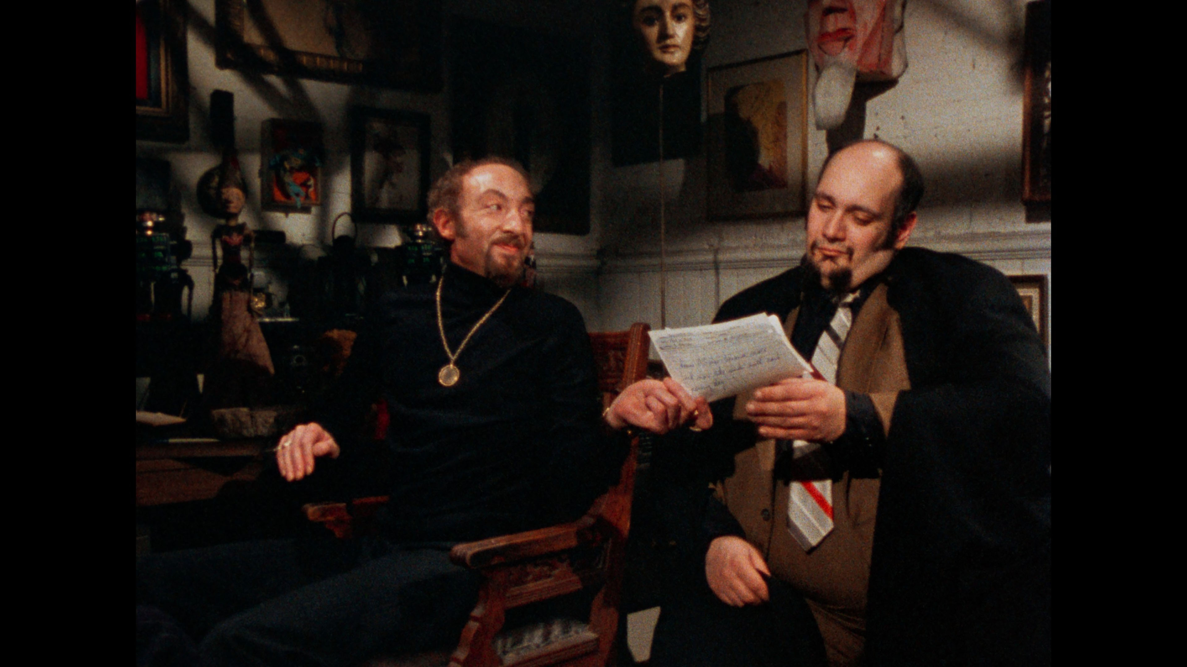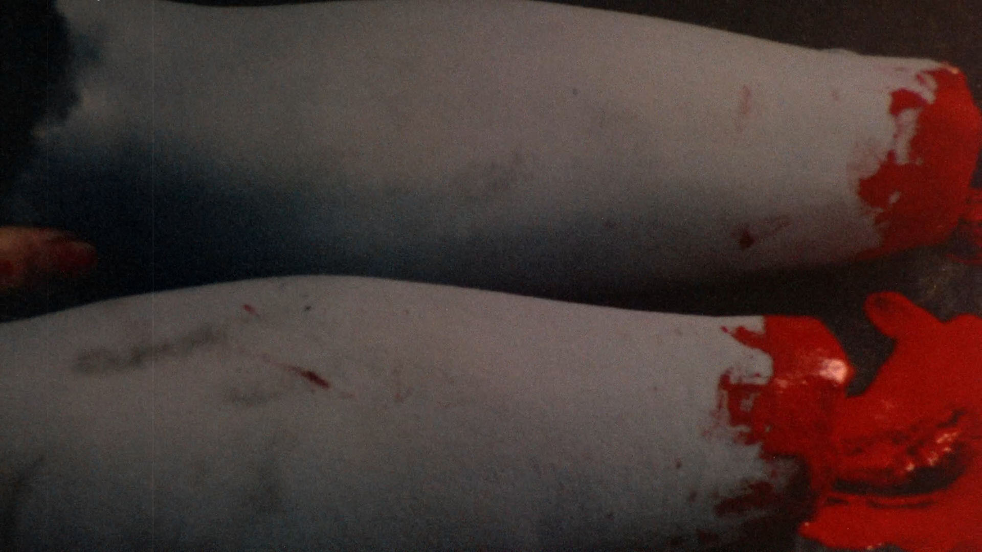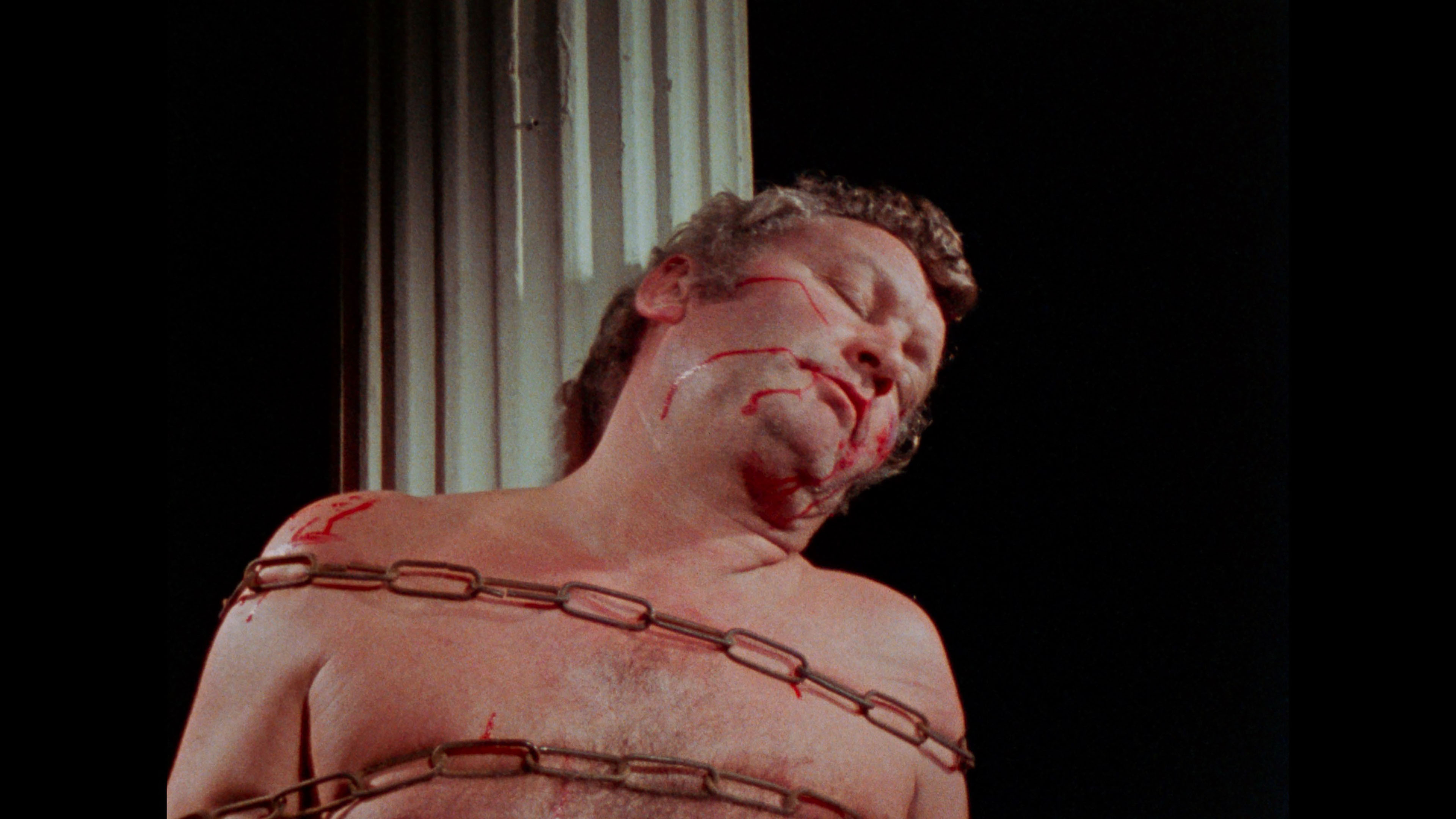 Vinegar Syndrome gave the film its inevitable upgrade to 4K UHD with a two-disc set also featuring a Blu-ray with additional extras. We may not have 4K editions of Seven Samurai or Gone with the Wind, but at least we finally have a pristine 4K edition of Reed's grubby classic in our hands. The presentation (with HDR on the UHD and transferred from the 35mm internegative, the best element around) is back to 1.33:1, a welcome gesture as it's far better composed that way and no longer squeezed, and the leap in quality is drastic with rich black levels, much more natural skin tones, and finer detail throughout. This is also the extended cut (including the Sardu, Master of the Screaming Virgins title card), with the restored scene now immaculate (see the second frame grab comparison below) and matching the rest of the film. In addition to the Roth commentary, you get a terrific new commentary track by John Szpunar, author of Blood Sucking Freak: The Life and Films of the Incredible Joel M. Reed, who offers a packed history of the film from its outgrowth during the development of another unrealized project called Teen Demon, the financing process, the inspiration of a real S&M ballet performance, and wild stories about nearly every single cast member. Absolutely essential listening, especially if you're a fan of the film. "Freaks Come Out at the Drive-In" (14m31s) captures highlights from the Troma-Thon 2023 screening of the film at the Mahoning Drive-In Theater in Lehighton, PA, including an interview with Lloyd Kaufman about the film's distribution history and its success as a midnight movie title along with the real and fake women's rights protests. A full live commentary (93m37s) captured on VHS from a 2009 screening features Reed, Art Ettinger and Ken Kish, plus an intro by Reed, with lots of loose and funny stories from the shoot all the way through. The audio quality is hit and miss since Reed tends to mumble and the movie audio is fairly loud, but it's a priceless record to have for sure. A colorful screening Q&A with Reed (55m9s) has him answering questions at length in a movie theater lobby and on a stage, while a "random hotel room interview" with Reed (24m39s) from his Cinema Wasteland appearance lives up to its name as he takes a weird phone call, talks about doing conventions, and ruminates on his career. Ported over from the earlier releases are Kaufman's intro (2m36s), the archival cast and crew interviews by Roth (3m52s), the Roth interview (20m11s), and the Chris Jericho interview (14m36s), plus the reissue Blood Sucking Freaks main titles. VINEGAR SYNDROME (UHD)