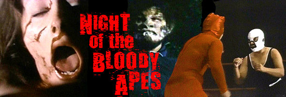 While Night of the Bloody Apes (La Horripilante Bestia Humana) would be compelling enough based on the sheer lunacy of its premise, Cardona apparently decided to spice it up with some extra gore footage to go along with the cheesecake nudity. Apart from the aforementioned heart transplant, the killings all contain gruesome close ups of characters being dismembered, skinned, or otherwise abused, all rendered in loving color. If H.G. Lewis had made a wrestling/killer monkey man movie, it would have probably looked a lot like this. The crazy dubbing just adds to the fun, as characters spout nonsensical observations right and left, turning the story into a maddening jumble.
