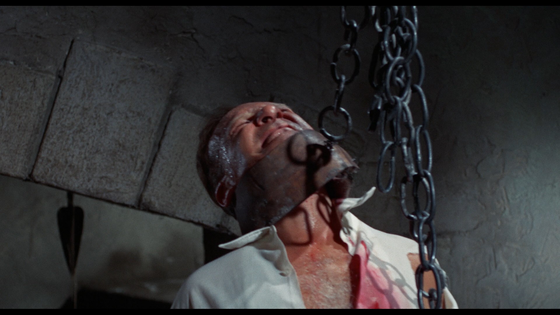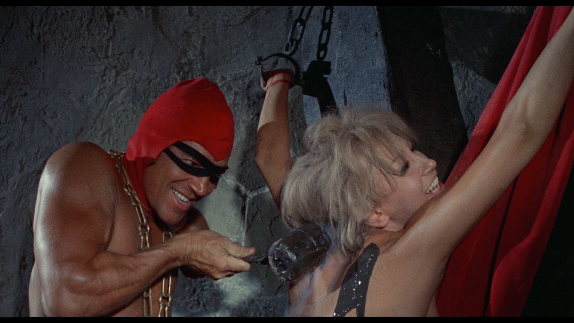 it naturally has the Italian title card, but you can watch the film with the English or Italian tracks with translated or SDH English subtitles. It's a toss up which version is preferable; virtually everyone besides Hargitay was speaking Italian, so that's how it syncs up for most of the running time. However, the English sub is so outrageously pulpy it's almost hard to watch the film without it. Hargitay was speaking some kind of English dialogue on set, but his dialogue was clearly rewritten during the dubbing process as it very rarely comes remotely close to matching up. Extras here are pretty sparse, but you do get a new audio commentary by David DeCoteau and David Del Valle who focus a lot on Mickey Hargitay and the celebrity mystique around him as well as their memories of '60s drive-in movies, Italian Gothics, muscleman movies, etc. Also included are the U.S. trailer (complete with Something Weird bug) and the two English-language title sequences (4m33s) as Bloody Pit of Horror and A Tale of Torture, but fans will want to hang on to their old DVDs since it also has that extra Marquis De Sade bit at the beginning. Though it didn't make it in time to be included on the disc, Severin also has a great 24m59s interview with Pupillo by Roberto Curti that you can view here.