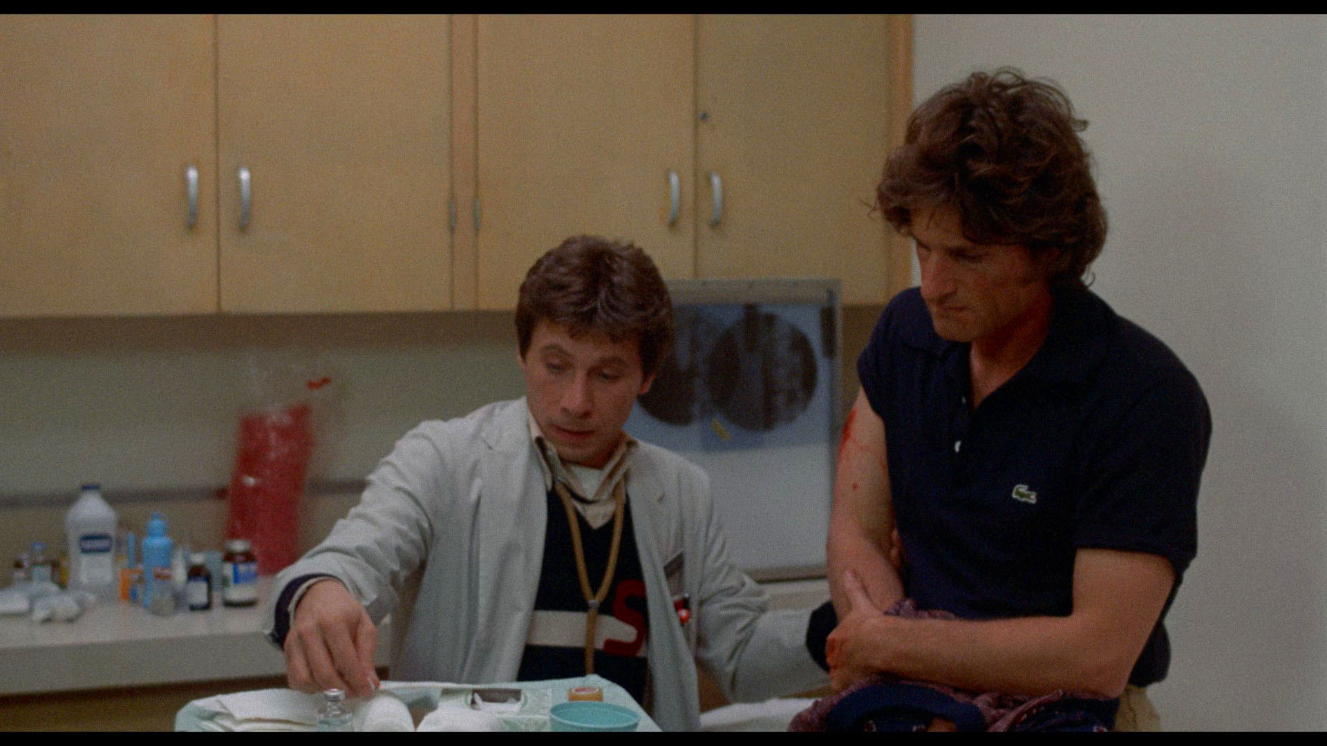 Both also port over all the extras from the Filmcentrix release on the Blu-ray options (commentary, featurettes, archival Q&As, etc.) and let the film itself fill out the UHD with only the commentary, while adding the alternate trailer and The Ringer with optional Lieberman commentary to the Blu-ray. The Camera Obscura also has a 35-image gallery of posters and stills accompanied by soundtrack music, plus a booklet with an essay by Dr. Marcus Stiglegger; audio options include PCM 2.0 mono for the differently pitched German theatrical and home video mixes and the English mono mix, plus a DTS-HD MA 5.1 English track with optional German or English subtitles (plus optional German subs on the extras). On the other hand, the French release has optional French subtitles and, rather t3han a DVD, tosses in a bonus Blu-ray featuring a no-frills presentation of Lieberman's 1988 VHS cult film Remote Control with Kevin Dillon and Jennifer Tilly (under the title Meurtes en VHS), though you can also purchase it separately on Blu-ray or DVD from Lieberman himself.Of course, it was just a matter of time before Synapse upgraded the film. In 2024 they issued a three-disc limited edition (UHD, Blu-ray and soundtrack CD), followed in 2026 by separate retail UHD and Blu-ray options. As you would expect it's the best-authored option of the bunch, featuring exceptional detail and a nice color gamut for the HDR10-compatible Dolby Vision grade on the UHD. The framing is identical as the prior Blu-ray and UHD options with similar but not identical color, with more convincing ones on display on a few scenes (like the fourth frame grab comparison below). The DTS-HD MA 2.0 mono and 5.1 surround English mixes both sound excellent, with optional English SDH subtitles provided. This time you get both of the Lieberman commentaries (with Berger and Drenner) together in one place, plus the 2003 interview with Lieberman, the Channel Z interview with Lieberman and Garris, and the "Lieberman on Lieberman" piece, plus a funny Fantasia Film Festival screening Q&A (36m29s) with Michael Gingold, two trailers, The Ringer, the bonus LSD short scare films LSD-25 (26m41s) from 1967 and LSD: Insight or Insanity? (18m3s) from 1968 with lots of inappropriate stock music and groovy narration, and a 5m37s image gallery. The film itself can also be played with a new 1m29s Lieberman intro about the film's real-life inspiration while he goofs with a Rodin-esque sculpture.