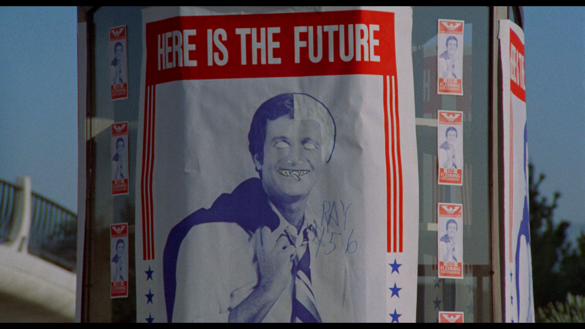 get a workout throughout most of the running time. Even the innocuous sound of a crackling fireplace is dramatically foregrounded in an early scene, bursting from the front speakers with unnerving impact. Lieberman contributes a number of extra features, beginning with an audio commentary in which he discusses with Howard S. Berger the ins and outs of low budget shooting, the obstacles posed by the production, and the problems with creating multiple bald people on film. An early Lieberman short film, The Ringer (19m44s), is a stylized parody of Afterschool Special-style alarmist educational films, complete with dizzying close-ups and stern monologues. Then he turns up again for "Lieberman on Lieberman," a half hour career overview in which he discusses everything from his big break to his most recent activities. The disc is rounded out with a still gallery and the creepy theatrical trailer, which must have turned a few heads at the drive-ins. The first pressing of the disc includes a second disc, the complete music score on CD, which is guaranteed to disrupt the happy mood at any party.After that the film went incognito again for a while apart from a 2007 DVD from Shout! Factory, hosted by Elvira and paired up with Monstroid. In 2016, indie label Filmcentrix (a mainstream-targeted offshoot of adult film distributor Distribpix) released the first Blu-ray featuring a striking scan from the recently uncovered camera negative. Obviously it proved to be a big upgrade, with the DTS-HD MA English audio options including the 2.0 mono theatrical mix and 5.1 remix. That release also features a new Lieberman commentary with Elijah Drenner, and it's a great one as well as he talks about his own experiences with LSD and the government propaganda around it, the challenges dealing with his lead actor, his fondness for genre films, the influence of Cold War films, and more. Also included are two trailers, a select scene commentary with actor Mark Goddard (8m45s) about some of the acting muscles he got to flex in his role as a prominent politician, followed by a slew of video bonuses. "Tuning In On Tuning Out" (6m32s) features Lieberman discussing his own take on the film being slotted as an anti-drug movie and