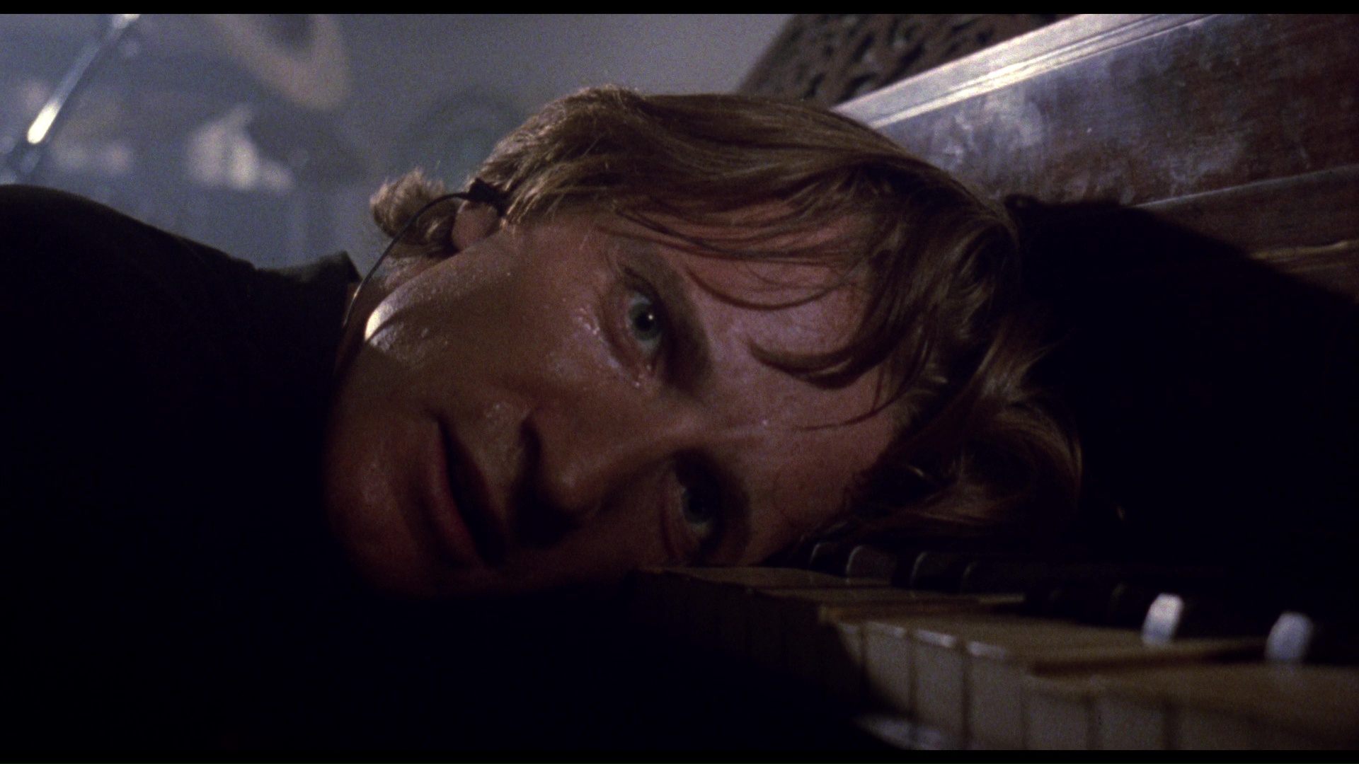 her comments about her brother), but Bava's swift and professional direction manages to keep things under control. Carlo Cordio's throwaway synth score is overshadowed by the use of classical music played over headphones during the murder scenes (Mussorgsky's "Night on Bald Mountain" here but originally Carl Orff's "O Fortuna" in first run Italian prints).