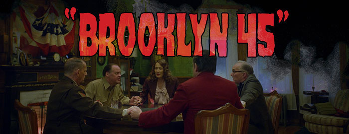 everything from retro ghost story stage productions to the popular podcast Tales from Beyond the Pale, but the big screen hasn't really caught up yet even in the age of A24 genre fare. An effective correction can definitely be found in 2023's Brooklyn 45, the third feature from writer-director Ted Geoghegan (We Are Still Here, Mohawk) and a spooky little chamber drama throwback to melancholy war-themed supernatural films like The Last Reunion and The Halfway House. In this case it also takes place in real time almost entirely in a single location, with a small ensemble cast really digging into their roles with gusto.