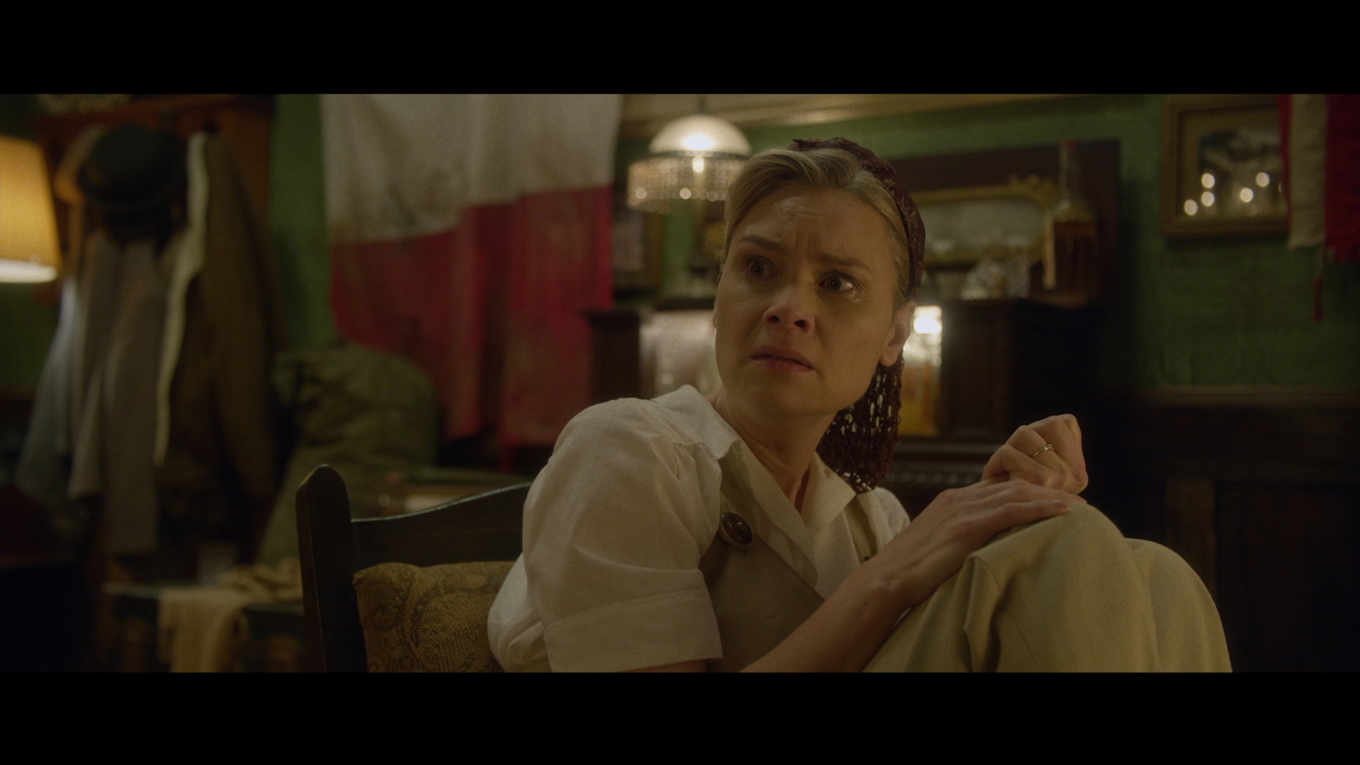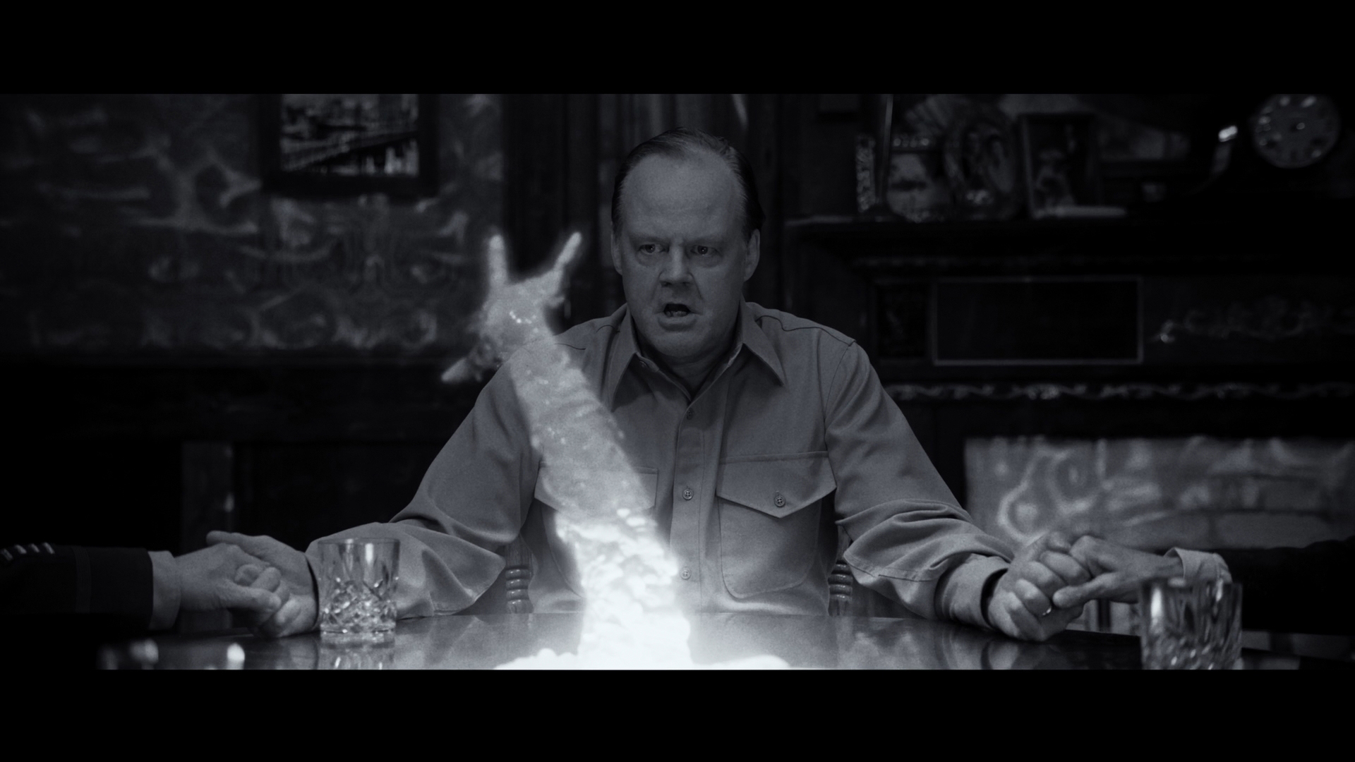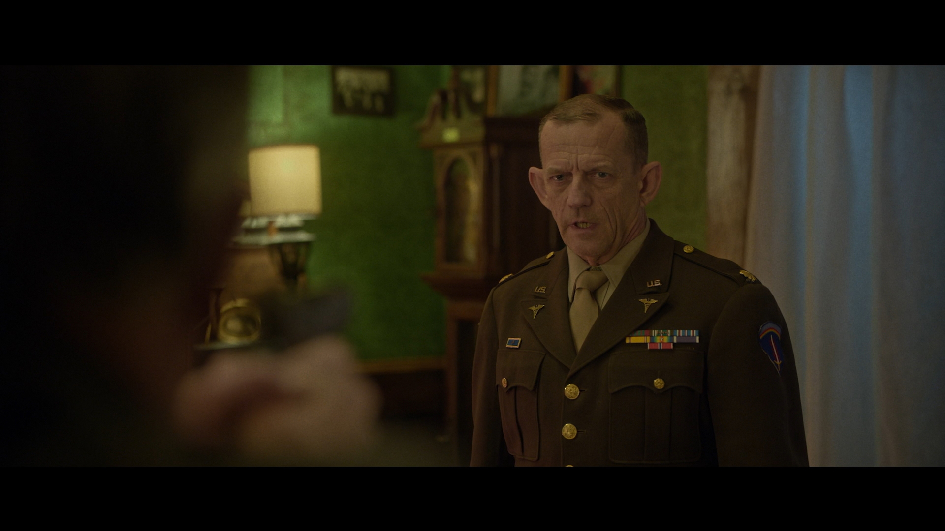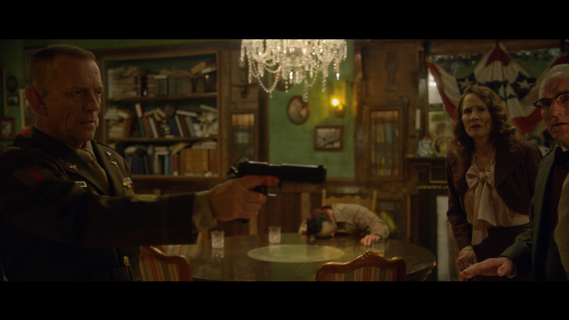you'd expect it looks and sounds perfect with a restrained but effective DTS-HD MA English 5.1 mix (with optional English SDH subtitles), but the big twist here is the inclusion of a black-and-white version as well that's been completely retimed to look like a vintage monochrome feature (with more traditional film grain to boot). Geoghegan appears for a very packed audio commentary covering pretty much everything you could want to know about the making of the film including the fortuitous discovery of a Chicago locale for the main street, the moment of his own vocal cameo, his longstanding connections with several of the cast members, and the painstaking process he went through to make sure he got the details right about showing the impact of the aftermath of war. That last idea gets developed considerably as well in the featurette "Ghosts of the Past: The Making of Brooklyn 45" (30m16s), with the director and cast appearing in separate interviews chatting about their initial responses to the roles, the methods they used to get into the mindset of the characters, and the poignant process Geoghegan went through working on the film with his own veteran father. The disc also comes with an insert featuring extensive production notes from the film's gestation to its streaming debut. BLACK-AND-WHITE VERSION