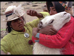 As much as one can fault the film, no quibbles can be had with Synapse's DVD. The original 1.33:1 aspect ratio is maintained with a bit of windowboxing on the sides, which will most likely not be visible depending on the overscan settings on one's TV. Image quality is superb, with rich, film-like colors and very crisp detail; it's highly doubtful the theatrical prints circulated by Aquarius looked even remotely this good. As an added bonus, this transfer from the original negative comes from a longer cut (labeled Uncivilized) complete with 15 minutes of additional footage; this will come as a nice surprise for owners of the long discontinued MPI VHS edition. Unfortunately that also means more llama mayhem, so consider yourself warned. (And whatever you do, don't watch it on a double bill with The Emperor's New Groove.) Extras include an Arthur Davis "diary" containing many extracts from a Brutes and Savages tie-in book and excellent, no-punches-pulled liner notes by Chris Poggiali.
