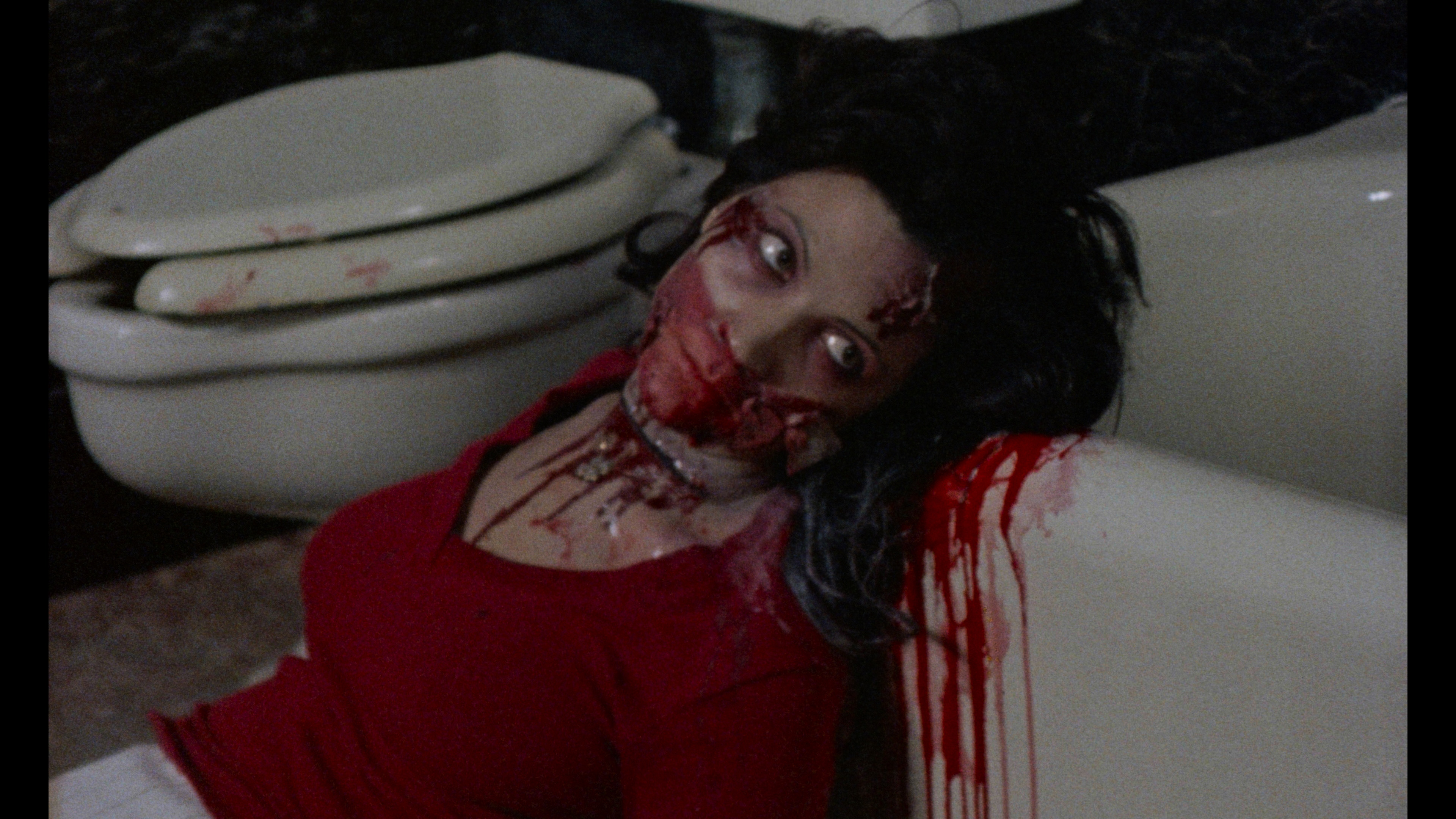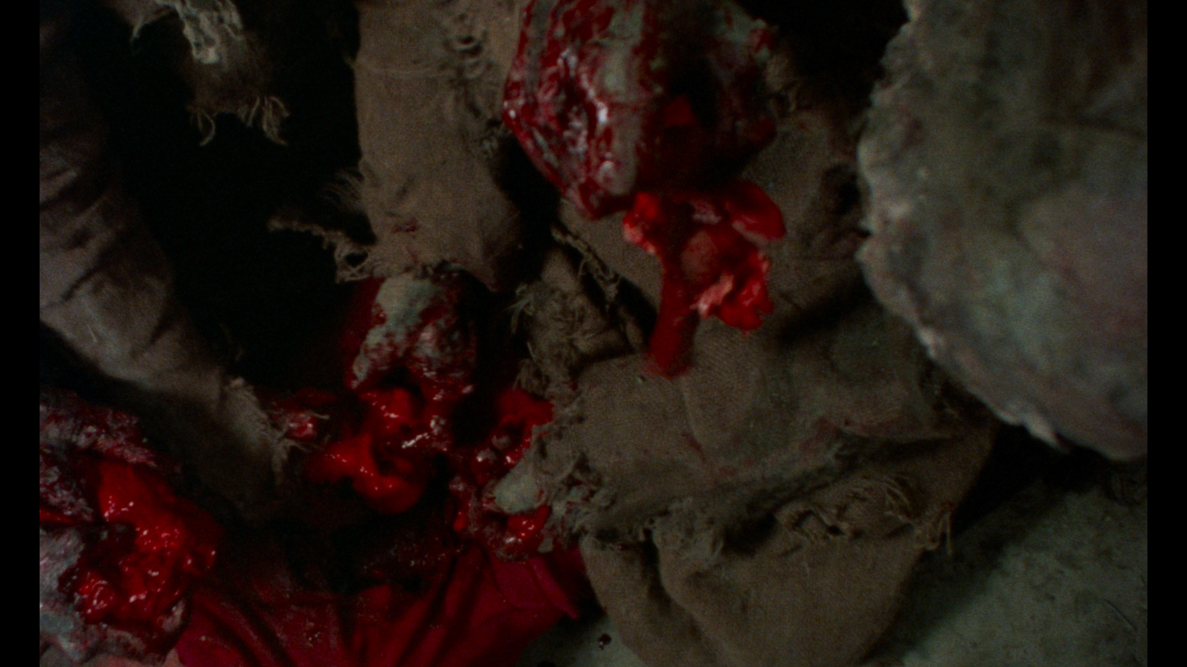 which is a bit classier and not even remotely as amusing; it's a very different viewing experience. (Unlike some other 88 Films titles, you can switch audio and subtitle options on the fly during playback.) An audio commentary with John Martin and Calum Waddell covers the wave of Italian zombie films from the late '70s through the '80s and goes into detail about the film's history with the BBFC and the ins and outs of VHS horror at the time. There isn't a ton of production detail here but they're certainly appreciative of Bianchi's directorial flourishes. One nice video bonus here is a "35mm grindhouse version" option, an HD transfer of one of the few circulating theatrical prints complete with heavy grain, flickering, and scratches, not to mention the American opening and closing titles. It's not pretty, of course, but it actually makes the film feel a lot more dirty and creepy throughout and admirably recaptures the feeling of seeing this in a theater if you've ever caught one of the film's (surprisingly frequent) repertory screenings. Also included are the trailer, the outtakes reel, a bonus trailer for Zombie Holocaust, and a 26m40s interview with author Mikel Coven, who puts Bianchi's career and particularly his zombie opus in context with the demands of Italian commercial cinema at the time. It's probably the most academic dissection of his work you'll ever hear.