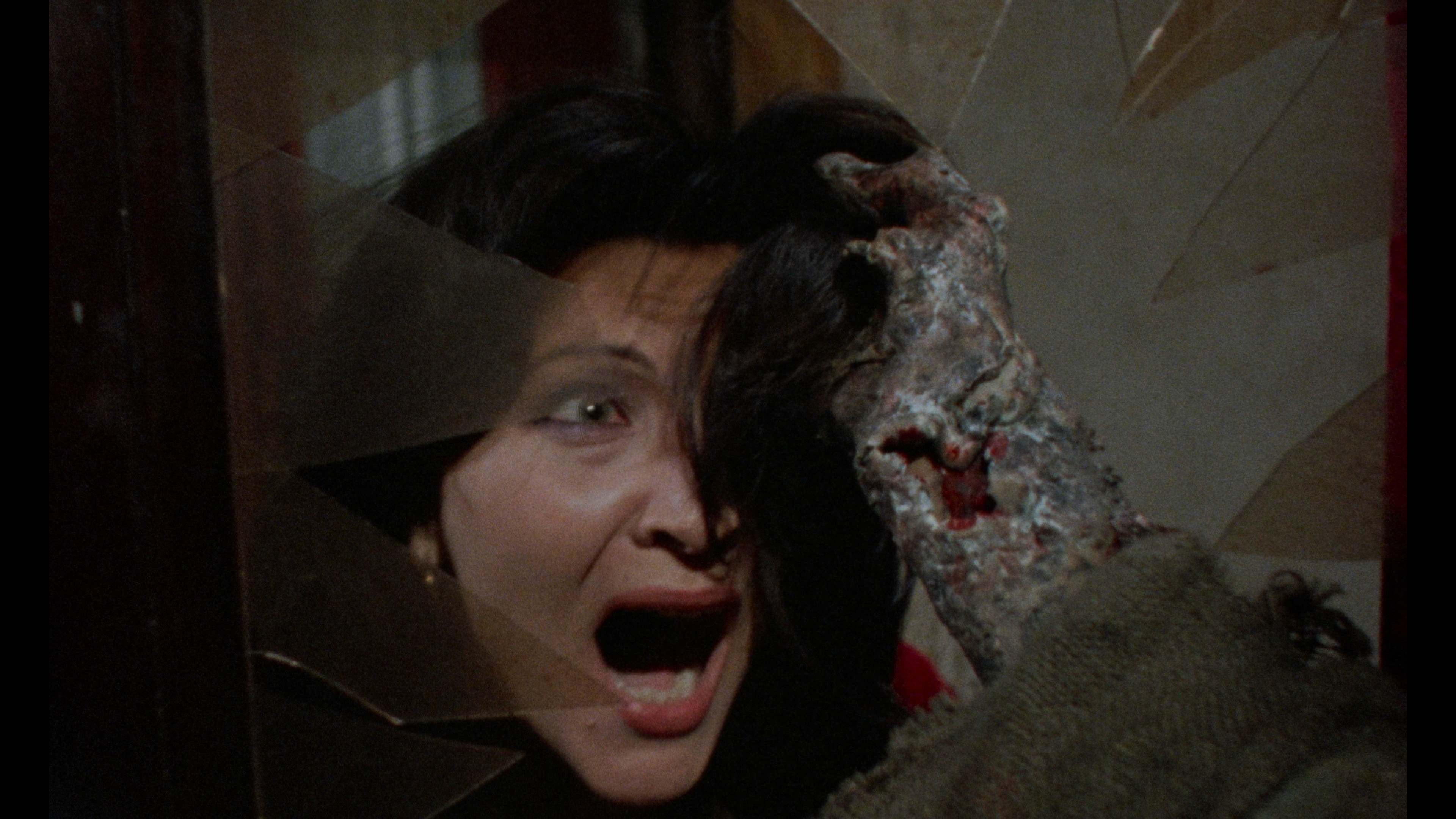 you could possibly want from a 1981 Italian film. Nudity, creepy electronic music (with some disorienting jazz thrown in for good measure), borderline incest, a wide variety of crafty zombies, the world's slowest scythe beheading, maggots, worms, and a nihilistic ending (with a great typo to boot) have made this one lodge in viewers' memories ever since its unrated theatrical run in the U.S. from FCG. '80s horror fanzines boosted the film's reputation through the roof with young gorehounds scrambling to find the Vestron VHS release, which was notoriously murky (several night shots turned into complete mud) but still earned many fans. A sought-after Japanese laserdisc was quite a bit brighter and more watchable, but few could actually get their hands on it.