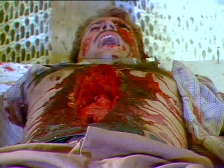 Though the opening half hour or so is deceptively tame, The Burning Moon is obviously dedicated to one primary purpose: as much splatter as humanly possible in just over an hour and a half. Eyeballs get plucked out, mallets whack prosthetic heads into pulp, butcher knives go through jawbones… well, you get the idea. The fact that it's actually pretty competent, reasonably convincing, and very
