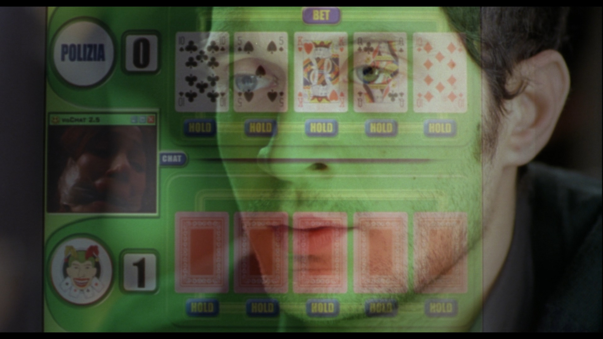In 2012, The Card Player made its first Blu-ray appearance as a limited Blu-ray/DVD mediabook from Austrian company Tonfilm with English and German DTS-HD MA 2.0 stereo tracks and German subtitles. The transfer's HD for sure and opened up slightly to 1.78:1 compared to the 1.85:1 seen everywhere else, but it's hampered by some edge enhancement and inconsistent, somewhat flat colors; most damningly, the German source used here is pulled from an element that had been censored very significantly for local theaters, and the missing bits have been slotted in using the old 1.85:1 standard def source. That