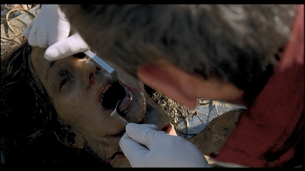 means there are some obvious drops in quality for all the nastier shots involving dead bodies (including the water mouth gush) as well as shifts in aspect ratio; see the second frame grab comparison below for an example. Extras on that disc include the promo and making-of featurettes