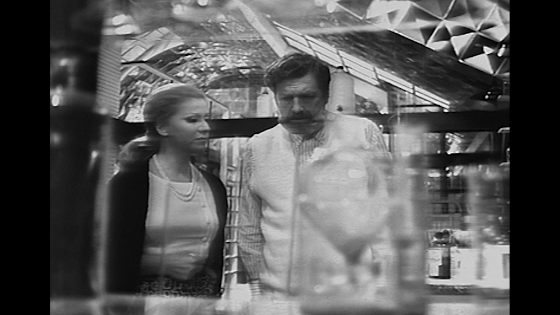 with all the limitations that implies. It looks like videotape, of course, including some analog damage in a few spots, but there's no way this could look any better -- and having it subtitled as good as it can be is a cause for rejoicing. The three extras for this one (spread across the two discs) start with "Dr. Jekyll And Mr. Albertazzi" (7m24s), an interview with actor Giuliano Disperati about the director-star's dedication to the source material, the nature of Italian TV production at the time (including the fact that black-and-white was still the standard there at the time), and the unorthodox approach to a story that had already been told many times. "Building the World of Jekyll" (9m13s) features set designer Emanuele Taglietti explaining the often resourceful approach to creating the environments seen in the production, including the very mod lab and that incredible medical classroom that looks like something out of Barbarella. Finally "The Double Spiral Staircase of Jekyll and Hyde" (14m42s) is a video essay by Joseph Dwyer providing a fascinating examination of the story's topical concerns and existential terror that remained unfiltered when brought to the present day in this adaptation, a stark contrast to what was being made for the big screen at the same time.