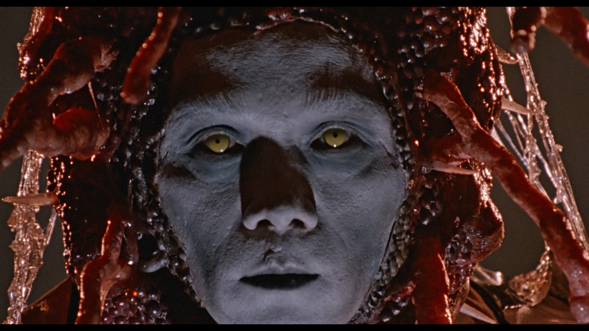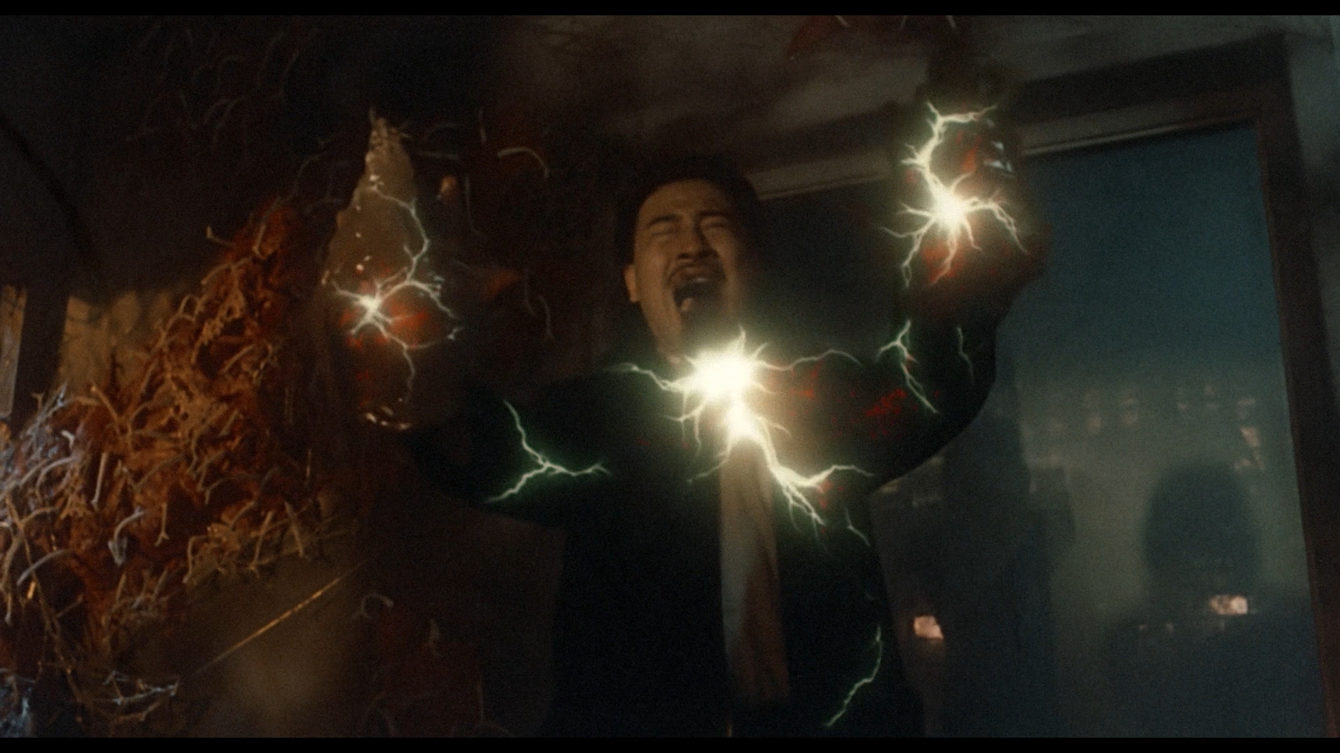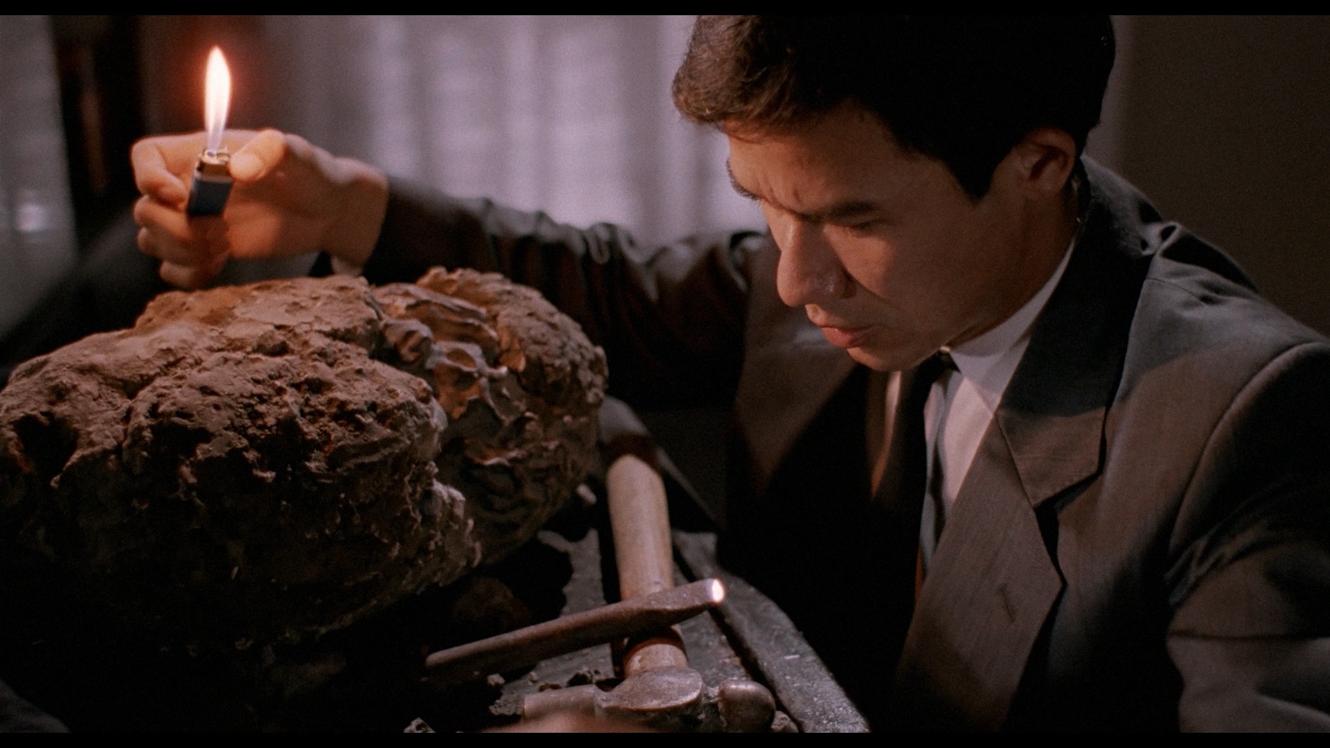 Frank Djeng provides another extremely informative audio commentary filling in the background of the film's history at Golden Harvest, the parties involved in the screenplay, the circumstances of the Japanese version, the Stephen Chow mania at the box office that took this one down, and lots more. A new interview with writer Gordon Chan (21m47s) covers the origins of the Golden Harvest film with Chua Lam and Alex Cheung, the difficult adaptation process from the novel, the obvious challenges with filming cats (with black cats being rarities in Hong Kong, causing them to dye some when a feline actor would pass away), and his lack of involvement with the production once the current director took over. That elusive Japanese version is also here in SD with optional English subtitles, obviously presented in non-anamorphic 1.85:1 but looking watchable enough for the curious. It's a radical overhaul of the film with a totally different Wisely framing device, a faster jump to the museum scene, and way more chitchat and comic relief; basically the special effects scenes are the only real overlap here. Definitely don't watch this version first, but it's a great addition here and much appreciated. Also included are a 1m58s still gallery and a remastered theatrical trailer best not seen before the film itself. The limited edition comes with an artcard, a rigid slipcase with new art by Sean Longmore, and a 40-page book with essays by Paul Bramhall and Matthew Edwards offering their own overviews and takes on Lam Nai-Choi's career including various genre highlights and the trademarks he brought to bear in this singular blend of horror, sci-fi, and utterly lunacy that still hasn't been duplicated.