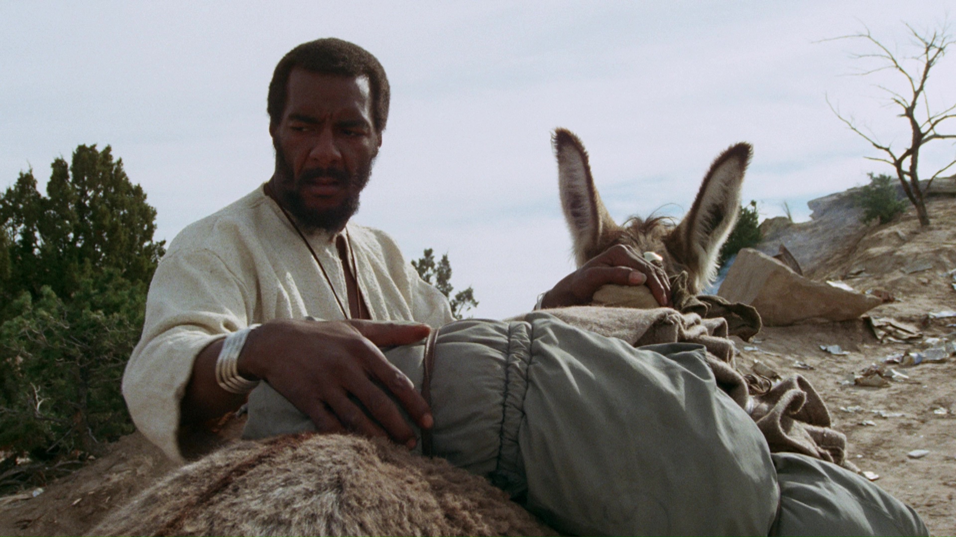 Legendary singer Richie Havens stars here as Othello, a wandering preacher who ends up at a desert commune run by Iago (LeGault, reprising his stage role), who announces in his first song that he's also Satan himself. Othello falls in love with and marries the young Desdemona (Vice Squad's Hubley, made up to look as boyish and homely as possible). That turn of events ignites a diabolical plan by the resentful Iago to paint the new bride as unfaithful, which is accomplished with the reluctant involvement of his wife Emilia (the always great Tyrrell) as Othello is distracted by the construction of a new church. Iago's plan works all too well, which results in significant bloodshed by the end credits.