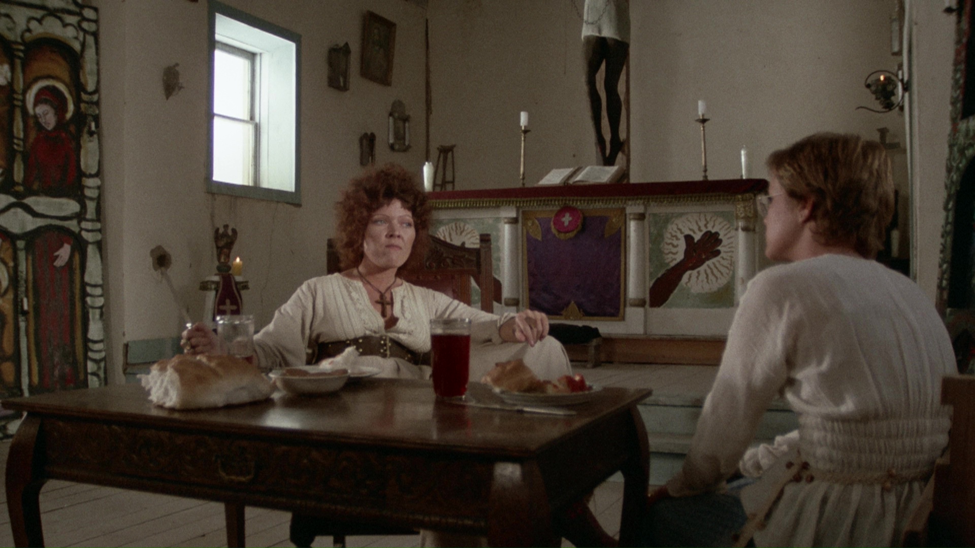 with one of its local part-time residents, actor Patrick McGoohan, brought aboard as director. The Scanners star had helmed a few episodes of his influential TV series, The Prisoner, but trouble ensued when Good's fervent conversion to Catholicism near the end of production mandated a drastic increase in the story's religious content, shot against the director's wishes. The Metromedia production was distributed by Cinerama, who abandoned a wide release plan after it played to virtually empty theaters in New York. New Line tried to reissue it as Santa Fe Satan with equally underwhelming results, and the film sank from view entirely for decades. Considering the caliber of talent involved and the