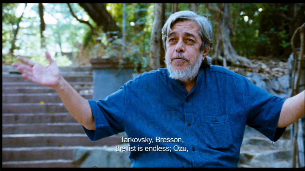 Even with a running time as epic as many Indian epics, the film is a remarkably light and fluid piece of work with some beautiful images of Nair either at work or simply sitting in a theater enjoying his favorite art form. Interestingly, his