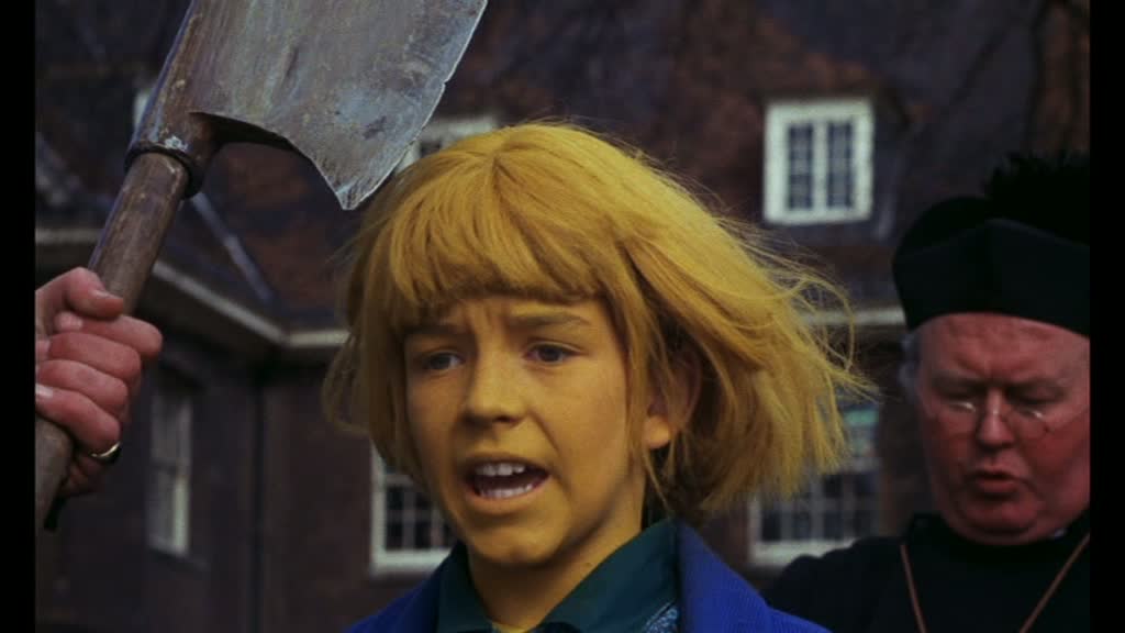 Very '70s and wonderfully cracked, this is the sort of story that moves with a childlike kind of logic from one event to the next. It's certainly stylistically interesting, especially when the entire train turns yellow and during the climax when John finds himself apprehended by a bunch of Beefeaters and slated for execution. Not surprisingly, it made a huge impression on young viewers and became a TV and VHS favorite. One really