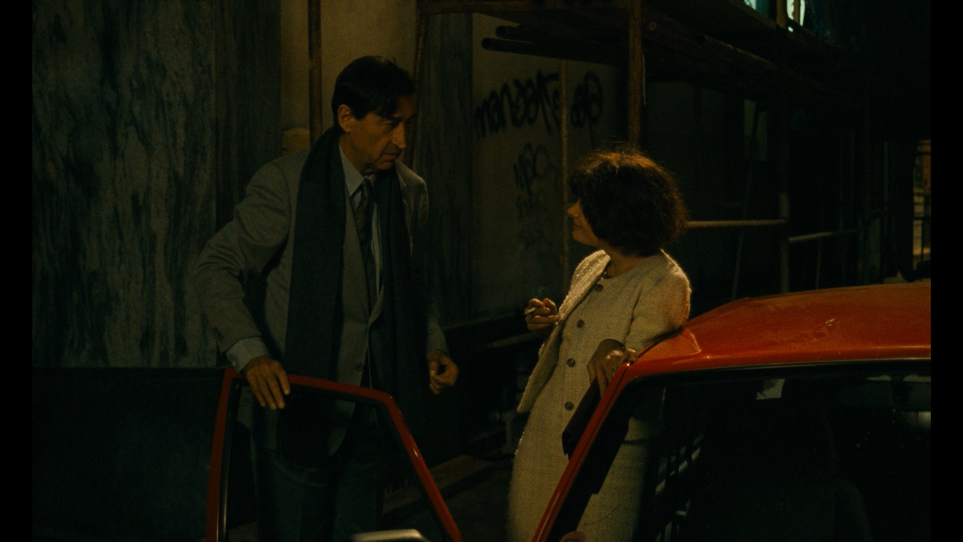 more character development here as well as a backstory to play with. Like the preceding one, this got very limited play outside of France until the DVD era when English-subtitled releases started popping up in the U.S. and in Europe. The first Blu-ray from Cohen (as mentioned above) was a big leap at the time and still holds up well, apart from some minor damage again here. That release features another Major and Klein commentary track, the 2014 reissue trailer, and 1989's Danger Lies in the Words (94m14s) directed by Chabrol from the The Secret Files of Inspector Lavardin TV movies.